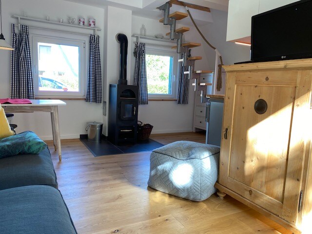 Genieße die Klänge der Natur wenn du in dieser besonderen Unterkunft in der mecklenburgischen Seenplatte übernachtest. Innen wurden nur feinste Materialien und Putze verwendet. Nichts ist überladen oder verbastelt - hier kannst du durchatmen, die Natur genießen, im See baden (5 min zu Fuss), direkt vor dem Häuschen einen Hike beginnen oder mit dem Rad vom Grundstück aus starten und um den See radeln ... am Abend schlummerst du vorm Gußeisernen Kamin friedlich in eine Wolldecke gekuschelt ein ...
