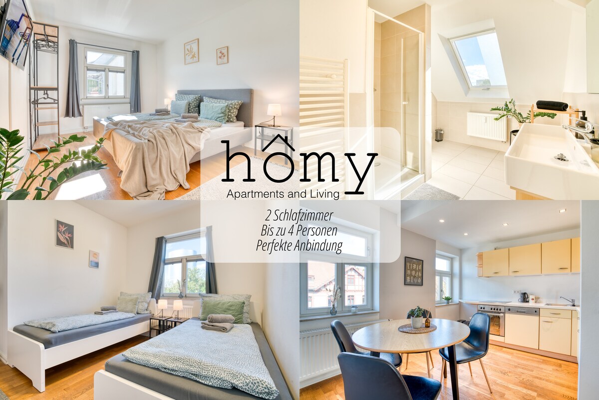 - 2 chambres, cuisine bien équipée, salle de bain bien-être avec baignoire, cabine de douche, balcon - au total env. 60 m² - super emplacement dans le sud de Leipzig près de l'autoroute A38 et B95 - lit double 160 x 200 cm, canapé-lit 140 x 200 cm - commerces à distance de marche - cafetière, bouilloire - TV 50 pouces avec WLAN/Wifi et connexion satellite - draps, serviettes sur place - sèche-cheveux, shampoing, fer à repasser, trousse de premiers secours disponible Sur demande et moyennant un supplément, réfrigérateur rempli à l'arrivée.