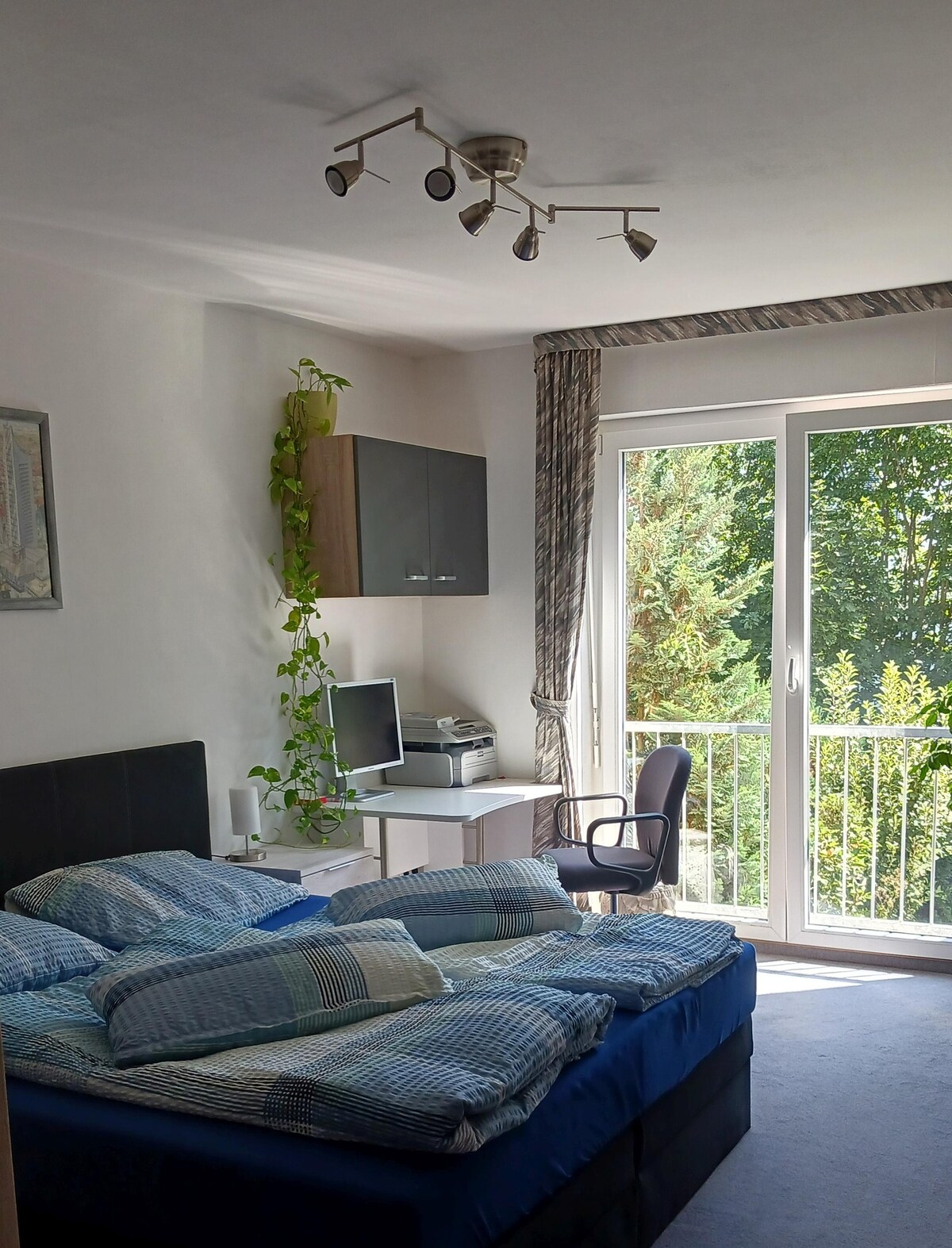Appartement confortable de 2 pièces équipé individuellement - très proche du célèbre monument de la bataille des Nations. En plus d'une toute nouvelle cuisine entièrement équipée, un lit boxspring confortable (1,80 m de large) vous attend dans la chambre à coucher séparée et dans le salon, un canapé qui se replie pour former un lit de 1,40 m de large. C'est aussi l'endroit idéal pour se détendre. Vous pouvez prendre un petit déjeuner confortable dans la cuisine séparée. Dans le jardin derrière la maison, vous trouverez deux vélos pour des excursions dans la région verdoyante.