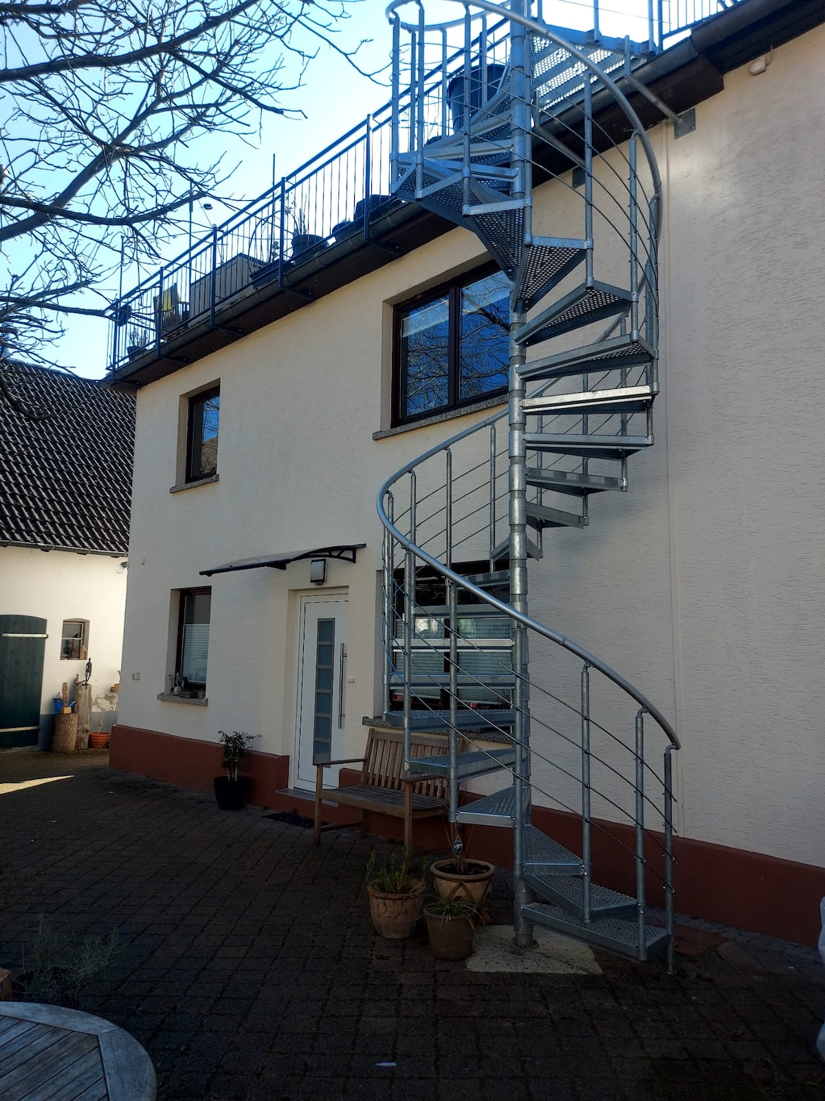 Séparé de la maison principale par une cour, l'appartement est situé dans une grange aménagée sur 3 niveaux. Au niveau intermédiaire se trouvent une salle de bain et un coin cuisine ainsi qu'un lit boxspring queen size. Un escalier raide mène à une galerie avec un lit double. La zone d'entrée (étage inférieur) se trouve avec une façade en verre donnant sur la cour. La salle de bain, la cuisine et la galerie ont des fenêtres donnant sur le jardin. 6 min à pied du S-Bahn pour Francfort (environ 30 min du centre-ville), bonne connexion avec l'A3. Actuellement 2G !