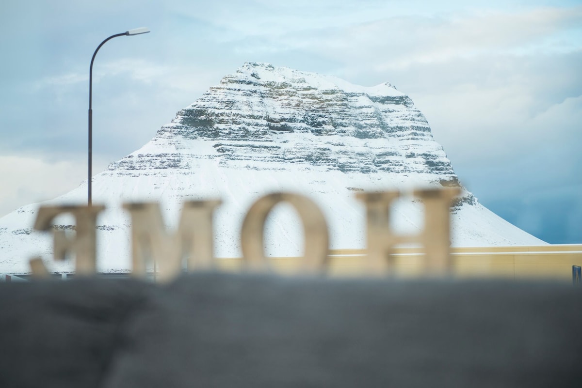 Notre appartement paisible sur le thème des orques offre une vue spectaculaire sur Grundarfjörður et le célèbre mont Kirkjufell. En été, vous pouvez admirer des couchers de soleil colorés et en hiver, observer les aurores boréales dans un ciel dégagé. L'appartement est détaché du bâtiment principal et comprend une cuisine bien équipée (oui, il y a du café et du thé), une salle de bain privée, ainsi que des lits confortables et un coin salon pour deux personnes. Supermarché, clinique, piscine et bord de mer accessibles à pied.