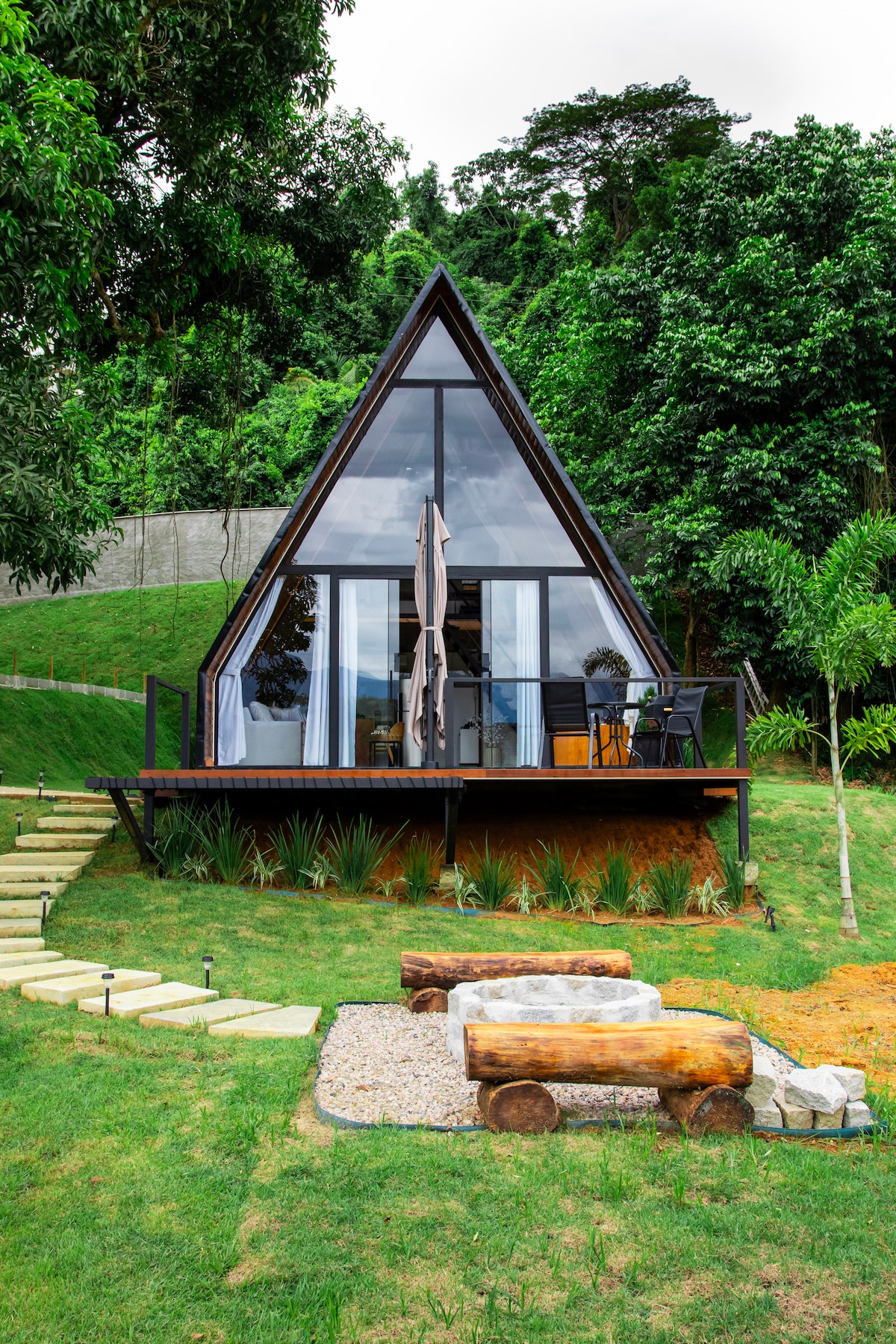 Le Chalet de Paix est un loft rustique en eucalyptus, neuf( ouvert le 23/02/2022), construit en pleine nature. Le balcon avec jacuzzi offre une belle vue sur la forêt, la mer à l'horizon et un coucher de soleil inoubliable. Climatisation , télévision 55"et vue imprenable dans chaque pièce. Suite très bien décorée avec une literie king size neuve et des serviettes de toilette blanches. La cuisine est entièrement équipée. Il dispose d'une cuisinière, d'un réfrigérateur, d'un four à micro-ondes, de couverts, d'ustensiles de cuisine et de vaisselle.