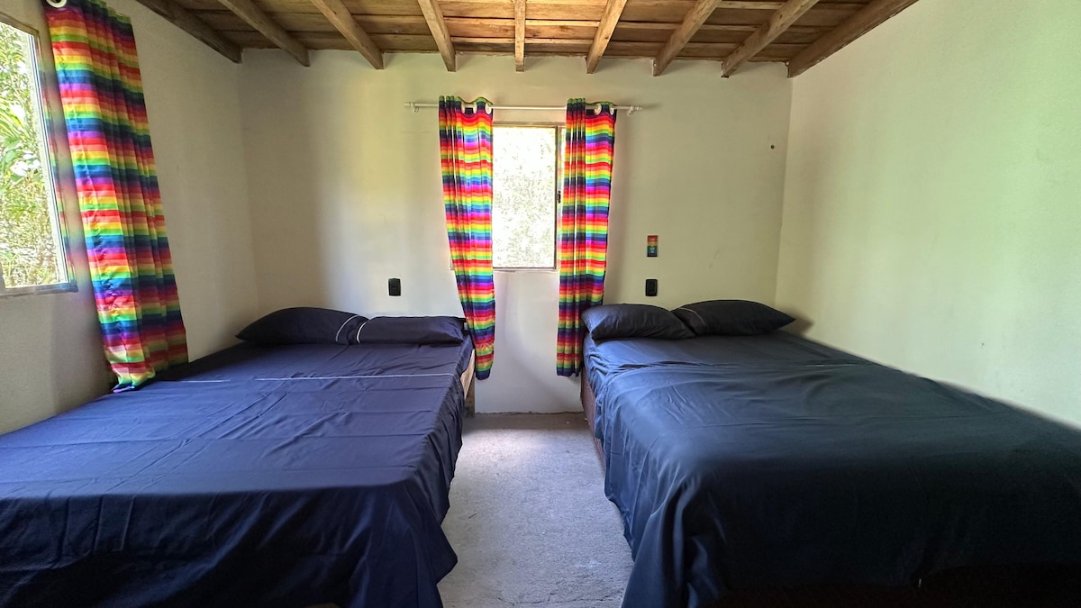 Espaço todo, casa com 2 quartos e 2 banheiros , sala com sofá cama e cozinha equipada. Ampla área, garagem coberta, quiosque com churrasqueira e banheiro. Corregos dentro da propriedade, tanque com peixes. Ótimo local para descansar, próximo ao centro de Antonina para curtir o Carnaval, próximo ao Rio do Nunes, e mercados próximos.