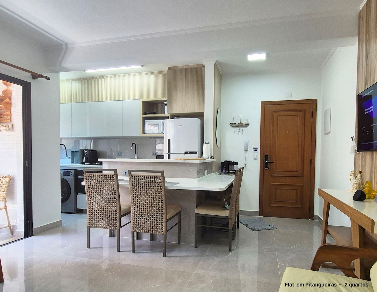 *** réservations du vendredi au dimanche, 2 nuits : Option de durée par défaut ou Arrivée vendredi soir et départ dimanche 18h **** Lindo Flat 2 couchages à Pitangueiras, à 1 pâté de maisons de la plage . 2 couchages, 1 suite . Chambres climatisées . Piscine au rez de chaussée . garage Service de plage avec 4 chaises et 1 parasol . Camareira Wi-Fi dans l'appartement . Écran de protection Windows . nécessaire pour apporter des oreillers, de la literie et bain, articles de toilette, tels que savons, papier toilette et