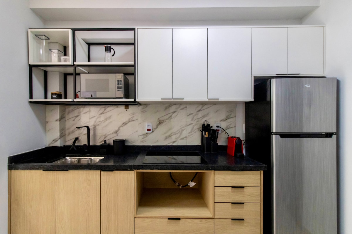 Studio moderno em condomínio de alto padrão com tudo ao seu alcance! hospede-se em um studio completo, dentro de um condomínio sofisticado que conta com um mini shopping cheio de conveniências. Aqui, você encontra de tudo pertinho: farmácia, cafés, restaurante e até mercado 24h ao lado do prédio! Ideal para quem busca conforto, praticidade e segurança, seja a trabalho ou lazer.
