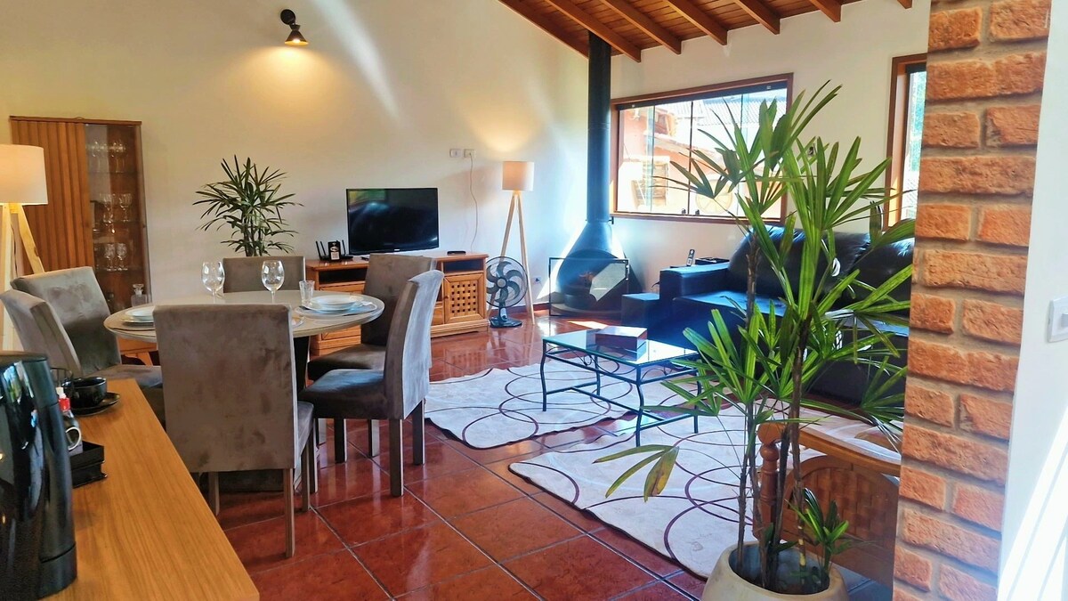 Maison Charmosa située dans un logement résidentiel fermé. Il propose 2 suites avec climatisation chaude/froide, ainsi qu'une cheminée intérieure pour réchauffer les nuits froides. Récemment construit sur un terrain entièrement boisé, il dispose d'un balcon avec hamacs pour profiter de la canopée des arbres. Jacuzzi et sauna humide à usage exclusif. Dans l'espace gastronomique, en plus d'un barbecue, d'un four et d'un poêle à bois, il y a une table pour 8 personnes et des tables de billard, de baby-foot et de ping-pong. Détendez-vous ou travaillez en pleine nature à Mairiporã !