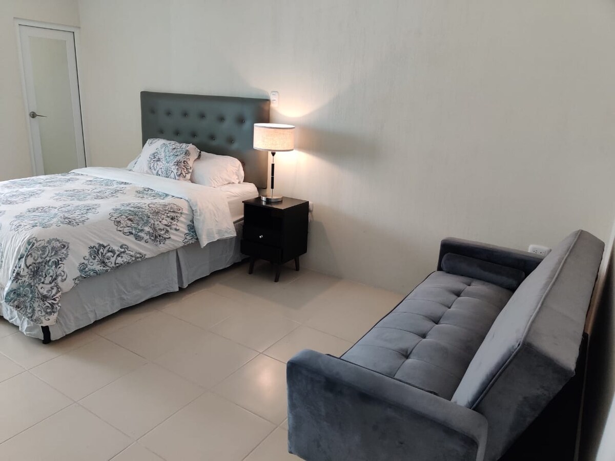 Appartement magnifiquement aménagé et tout neuf avec une vue imprenable. Ce logement formidable offre de merveilleuses commodités pour se sentir comme chez soi. Salon et coin repas à aire ouverte accueillants, donnant sur une cuisine moderne entièrement équipée. 2 chambres confortables avec des lits et une literie de haute qualité. 1 salle de bain et 1 demi-salle de bain modernes. Un service de blanchisserie peut être proposé. Situé au centre, à distance de marche des restaurants et à proximité de la Plaza San Francisco et de l'hôpital général. Idéal pour une famille ou des professionnels.