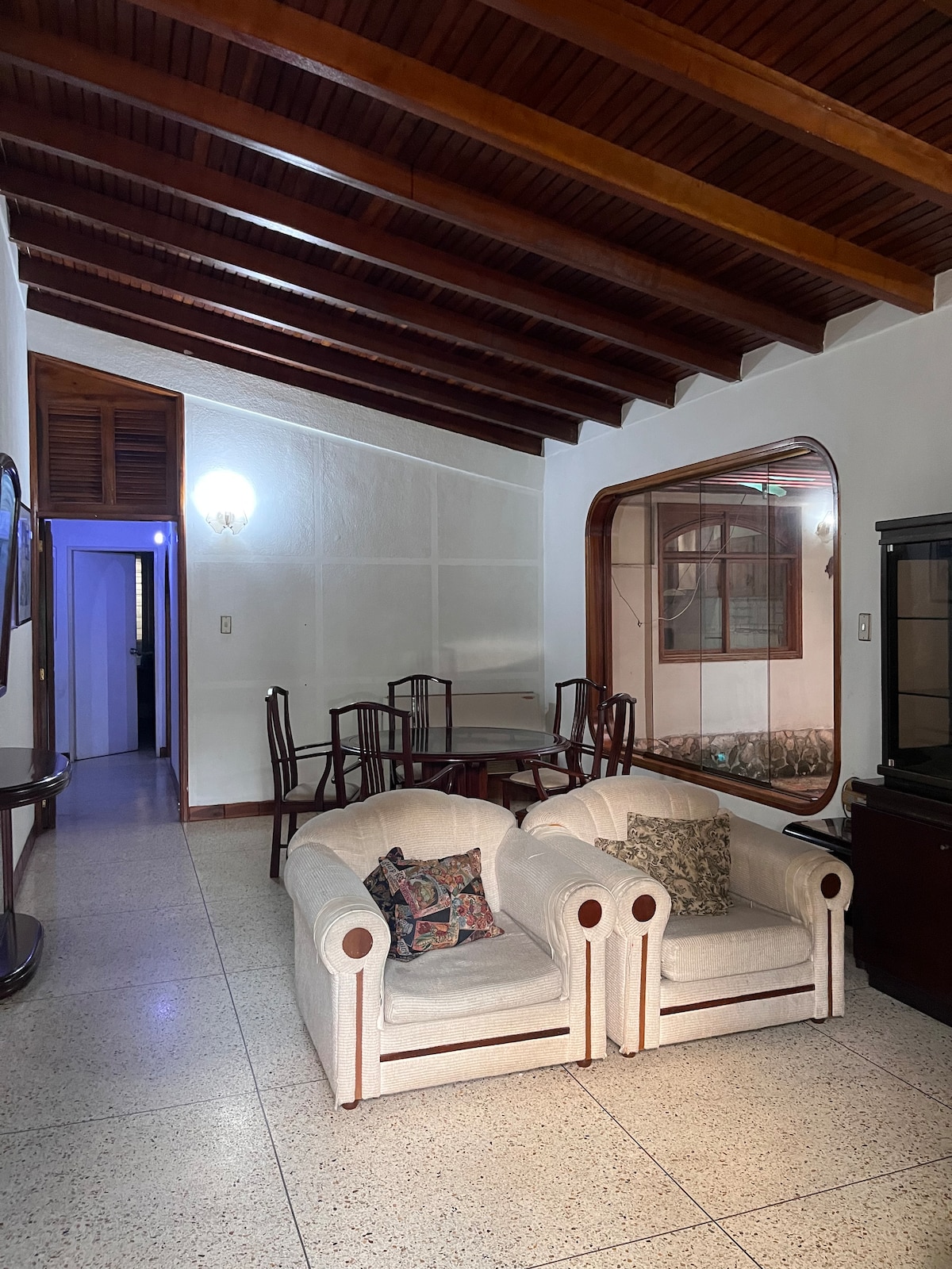 Bel appartement spacieux ! Situé dans un quartier exclusif de la ville. Profitez de la simplicité de cet hébergement calme et privé dans l'une des zones les plus agréables de Puerto Ordaz. Idéal pour courts et longs séjours, voyages en famille et en couple Espace Il dispose de 4 chambres (1 Double, 2 Duplex), 2 salles de bains et demie, place de parking. Ambiance dans chaque pièce