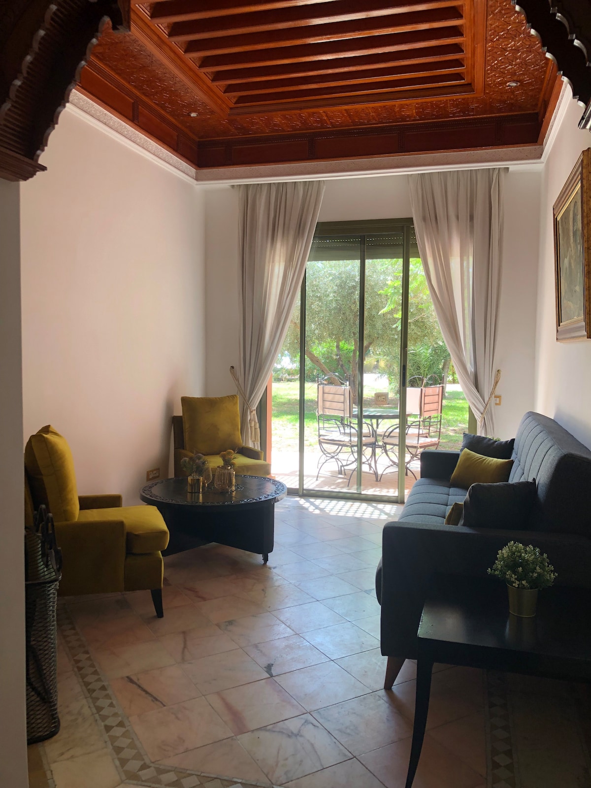 Découvrez un appartement d’exception alliant élégance contemporaine et charme marocain. Situé dans un cadre privilégié, on vous offre une expérience unique, pensée pour les voyageurs en quête de confort, de calme et de raffinement. Profitez d’un espace lumineux, décoré avec goût et d’un cadre apaisant. Chaque détail a été conçu pour vous offrir un séjour inoubliable, entre modernité et tradition. Idéal pour un séjour romantique, un voyage d’affaires ou des vacances familiale à Marrakech.