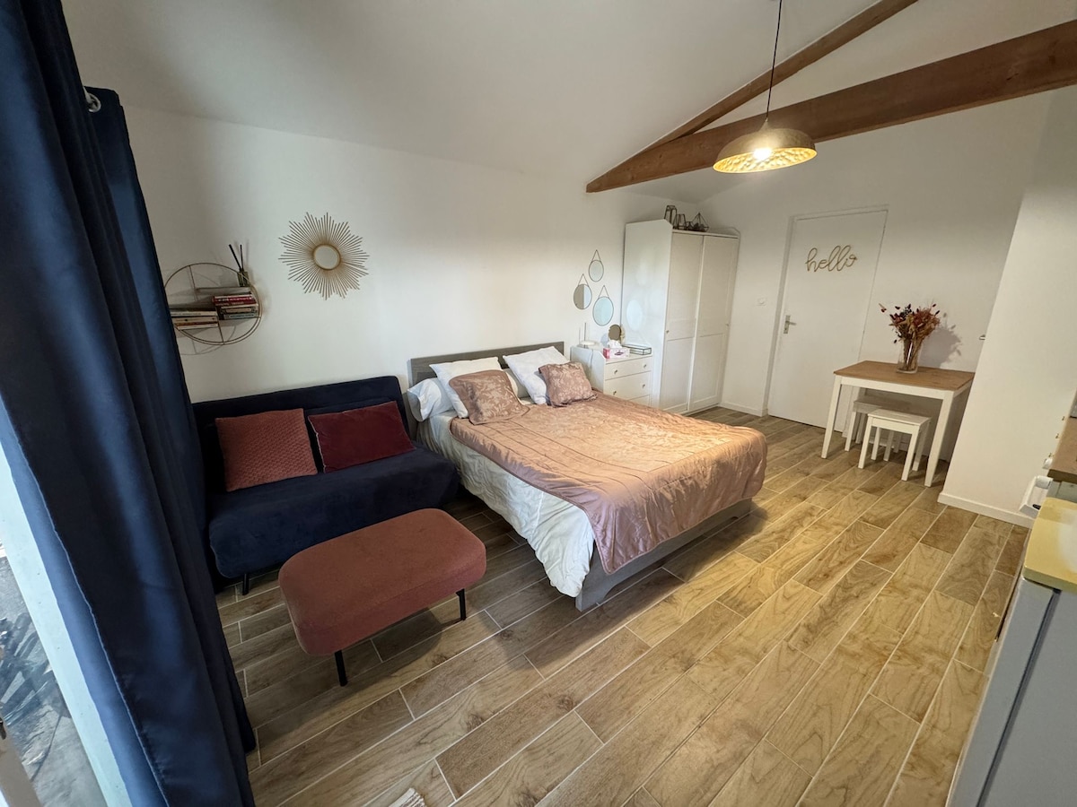 Détendez-vous dans ce logement calme et élégant. Maison entièrement indépendante composée de : Salon avec cuisine, 2 chambres avec lits de 160, 1 salles d'eau avec WC. Lit bébé disponible si besoin. Vous pourrez profiter d'une jolie terrasse avec coin repas et barbecue, sans aucun vis-à-vis. Nous sommes idéalement situé, entre Bordeaux, le bassin d'Arcachon et Biscarosse, environ 30min de chacune de ces villes Accès facile aux commerces mais il faut être véhiculé. Accès rapide à l'A63.