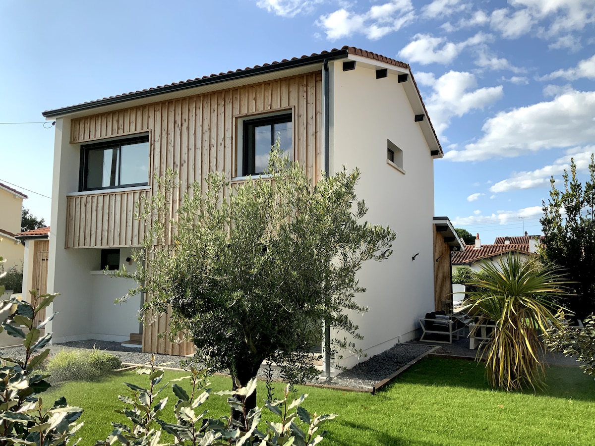 Villa de standing très lumineuse entièrement rénovée juin/juillet 2018 aux couleurs Arcachonnaises située dans de le quartier aiguillon à 200 m de la plage et du port ,à 50 m des commerces/restaurants/café Théatre etc.. La maison est composée de 3 chambres avec lits de 140 ou 2 lits de 80 + lit bébé/de 2 WC /2 salles de bain /1 séjour /cuisine avec lave vaisselle /lave linge/four/micro onde etc../expresso / Le propriétaire (viticulteur) vous remettra une bouteille de Bordeaux à votre arrivée