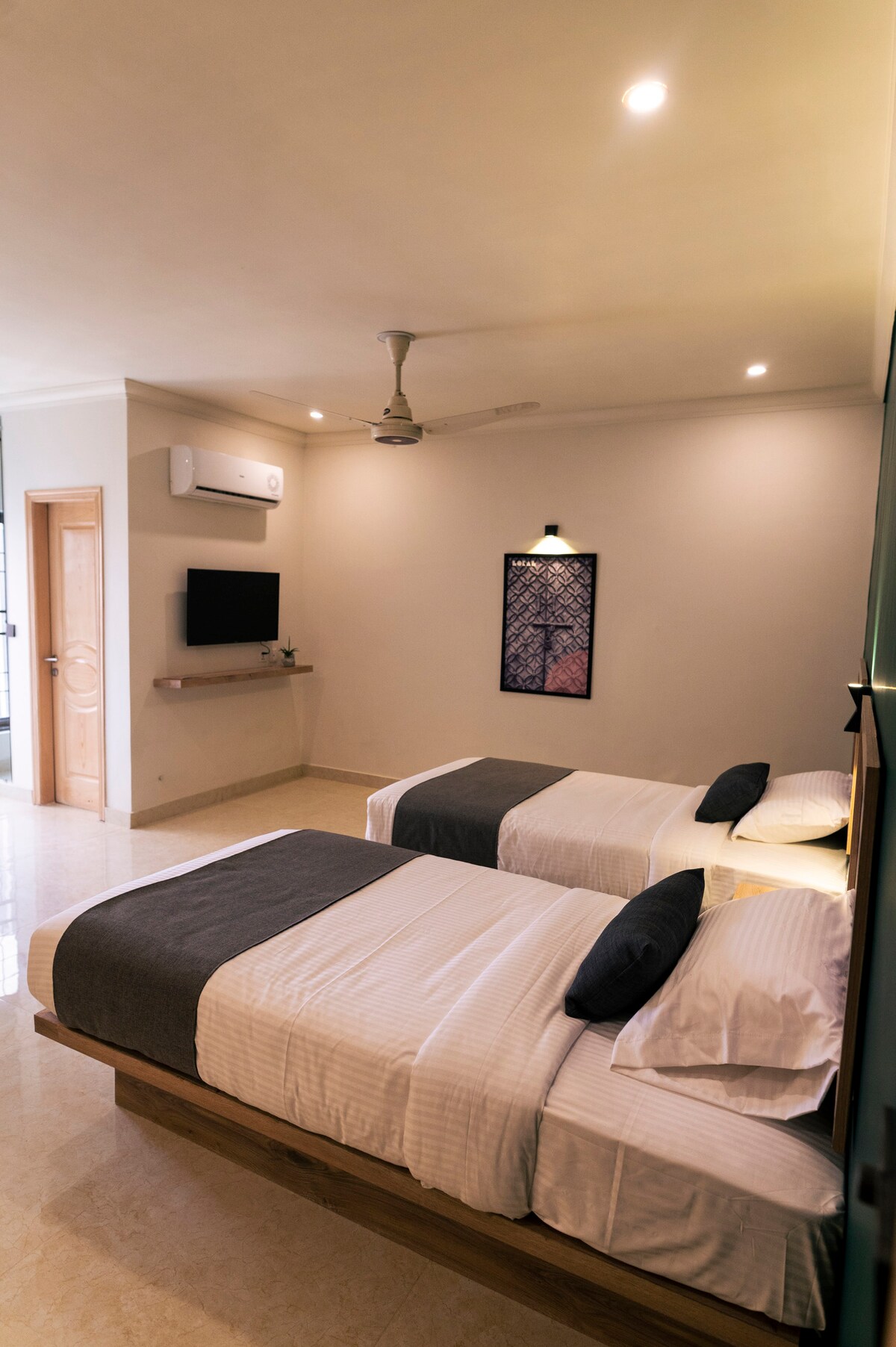 Veuillez noter que, conformément à la réglementation pakistanaise, les couples locaux non mariés ne sont pas autorisés. La chambre avec lits jumeaux de l'hôtel Oban offre un espace confortable de 16 m ², parfait pour deux personnes. Il dispose de deux lits jumeaux confortables, d'une connexion Wi-Fi haut débit, de la climatisation, d'un minibar et d'un bureau de travail. Les voyageurs peuvent également profiter d'un service en chambre 24h/24, d'une buanderie et d'un petit-déjeuner gratuit. Situé à Gulberg, Lahore, il est proche des magasins et des restaurants populaires, assurant un séjour pratique.