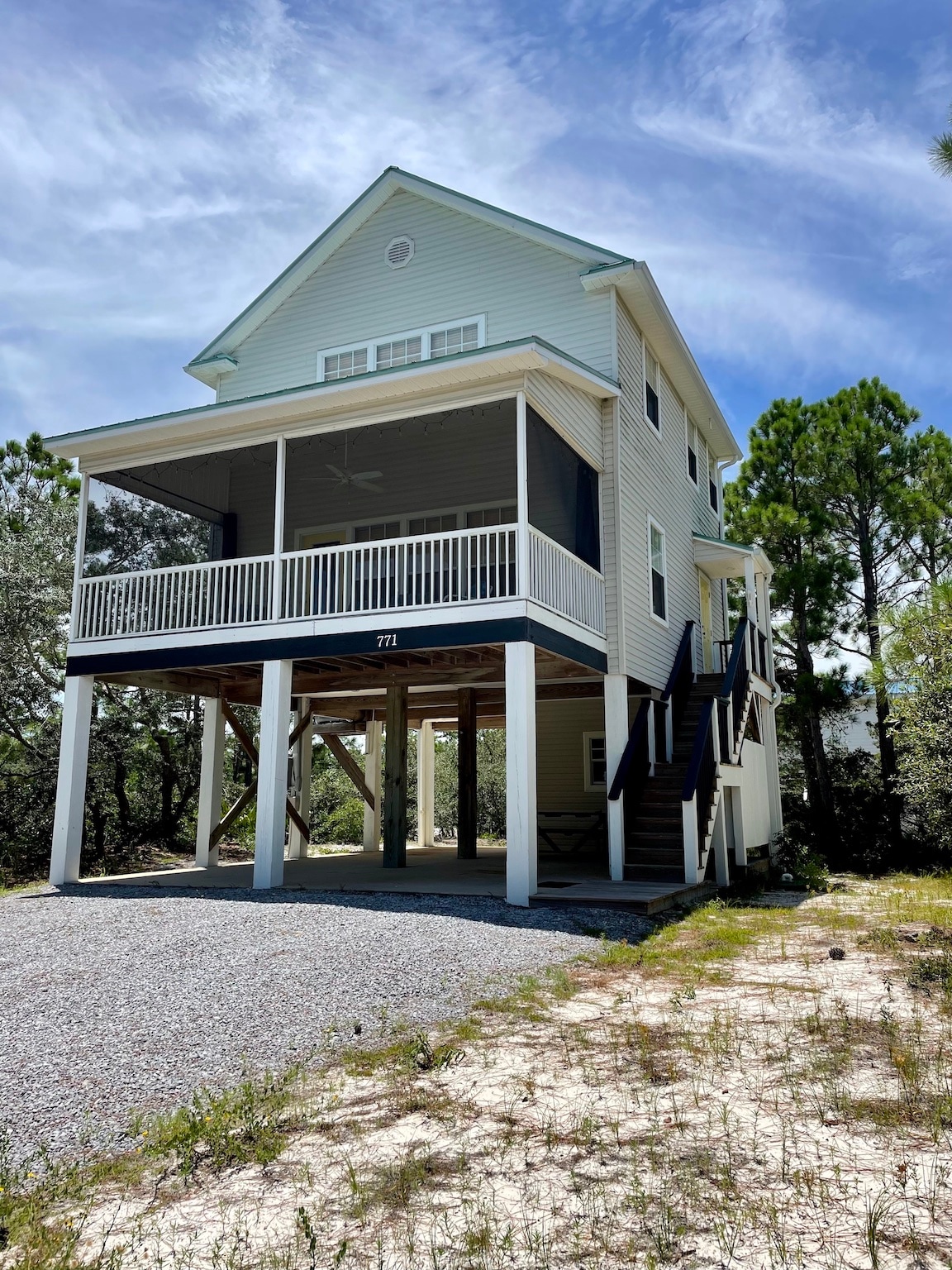 Nestled in private Cabana Beach Community in the serene and less crowded Fort Morgan area, Shark Shack is the perfect place to relax and unwind. Relax on the bed swing on the screened-in front porch or spend your time fishing off the private pier on the Bay side. The house features all-new furniture, memory foam mattresses, fresh bedding and updated kitchen utensils. Watch your favorite shows on the 86-inch TV, take a ride to the beach on the new tricycles then rinse off in the outdoor shower