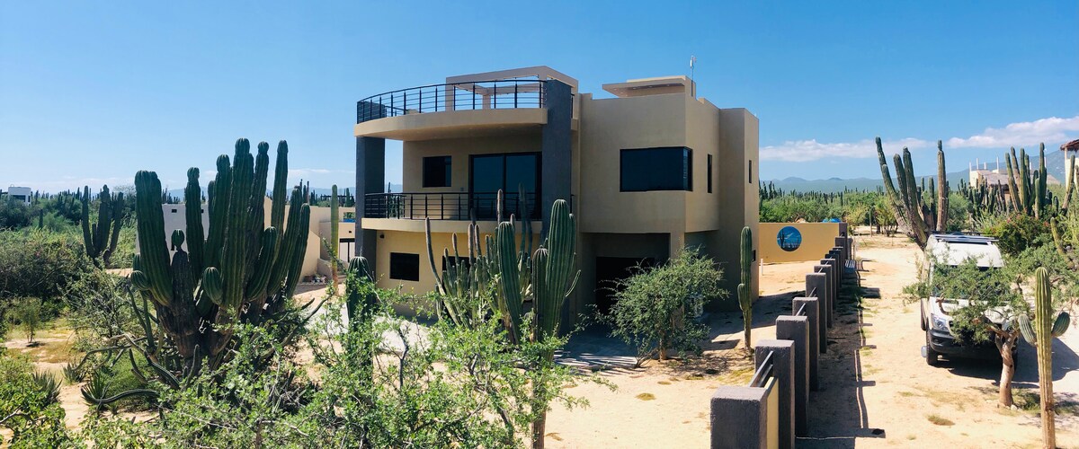 Des vues inoubliables dans toutes les directions ! Vous serez époustouflé par la beauté de la Basse-Californie du Sud depuis cet appartement neuf, élégant et entièrement équipé. Profitez d'un café sur la terrasse tout en regardant le soleil se lever sur les montagnes. Après votre journée de surf et de baignade sur la plage de Cerritos (à quelques minutes à pied ou en voiture), détendez-vous dans le jacuzzi pendant que le soleil se couche sur le Pacifique. Avec une vue imprenable sous tous les angles, vous êtes assuré de voir des baleines faire surface pendant la saison. Plus d'intimité que les condos.