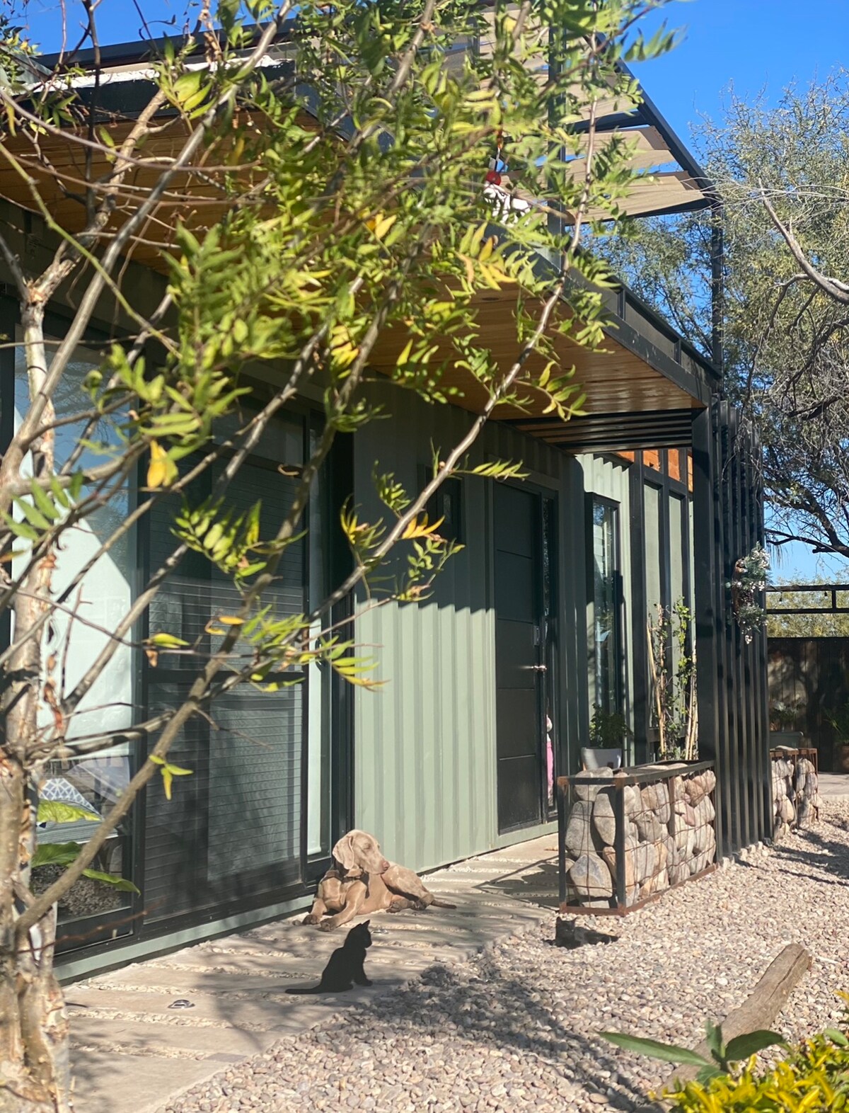 Bienvenue à El Yellow Submarine, une tiny house chic inspirée de "Yellow Submarine" des Beatles et des explorations de Jacques Cousteau dans la mer de Cortez. Située à San Felipe, porte d'entrée de cet "Aquarium du Monde", notre conteneur rénové offre une cuisine, un salon avec TV, une chambre, une salle de bains et un patio privé avec cheminée et BBQ. Avec climatisation et eau chaude, profitez du confort et du style dans cet espace unique.