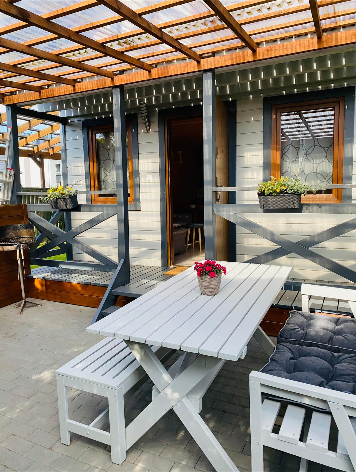Un appartement exclusif couvrant la moitié d'une maison jumelée située dans un quartier paisible et calme de Świecino. Un terrain de 2000 m², clôturé, entouré de forêt et entièrement à la disposition des invités Appartement de 8 lits. À l'étage, il y a 2 chambres et une salle de bain. Au rez-de-chaussée, il y a un salon avec un canapé lit. Une kitchenette et une deuxième salle de bain. Télévision, Internet Wi-Fi.