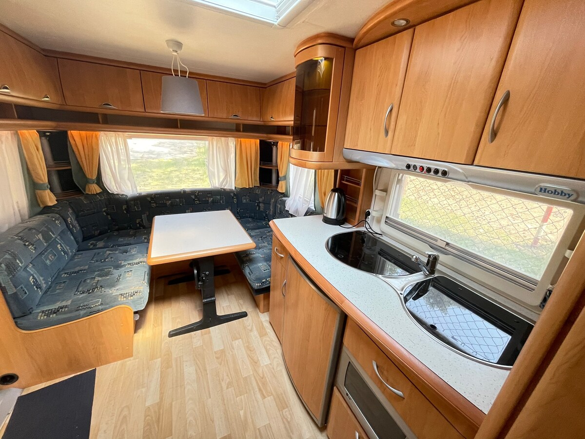 Maja est une caravane d'arrêt pouvant accueillir jusqu'à 7 personnes. Elle se compose de deux mini chambres et d'un salon. Il est équipé d'un grand lit double, de lits superposés simples et d'un lit simple pliant. Il y a un lit double en fer à cheval dans le salon. La caravane est équipée de tous les appareils de cuisine nécessaires, assurant un séjour confortable. La caravane dispose d'un vestibule confortable équipé d'un ensemble de meubles d'extérieur et d'une cuisine.
