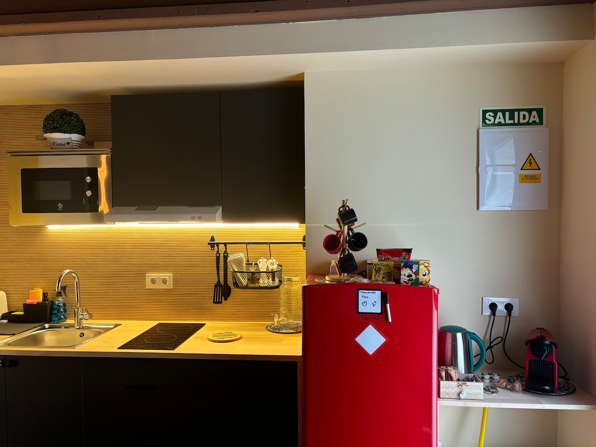 Adorable espace de type chalet dans un appartement-terrasse urbain orienté plein sud. Très aéré avec beaucoup de lumière naturelle. Terrasse confortable pour profiter du soleil et, le soir, se détendre avec un verre de vin. Une chambre avec salle de bains attenante. Décor de charme et cuisine bien équipée. Salon avec télévision et Netflix, haut-parleur Bluetooth et Wi-Fi qui en feront une maison loin de chez vous. Que vous soyez en visite pour la culture, la gastronomie, le sport ou simplement pour voyager, c'est un excellent choix d'endroit !