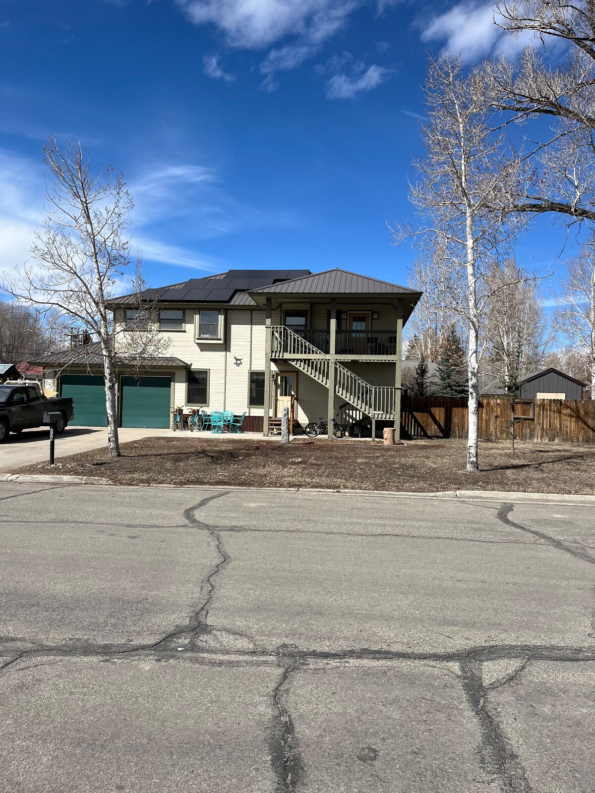 Spacieux duplex 2BR/2BA avec entrée privée, immense terrasse de 800 pieds carrés et vue imprenable à 360° - parmi les meilleures de Crested Butte. Animaux acceptés avec cour clôturée et porte pour chien XL. Profitez d'une cuisine complète, d'un poêle à bois, d'un chauffage au gaz et électrique, d'une télévision 75 pouces, d'une connexion Wi-Fi rapide, d'un foyer et de tout le confort d'un chez-soi. Situé sur 1,3 acres avec un accès direct aux sentiers et des observations fréquentes de la faune. À seulement 1,5 km de la ville. Pas d'espaces partagés : calme, privé et idéal pour les couples, les familles ou le travail à distance. Profitez des dernières mises à jour !