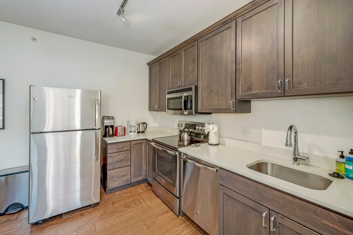 L'emplacement, l'emplacement, l'emplacement ! Profitez de ce condo à aire ouverte au pied de la montagne à Aspen. Après une journée sur les pistes (que ce soit pour skier ou faire de la randonnée), revenez dans cette copropriété confortable pour vous reposer. Dégivrez-vous près de la cheminée double face qui réchauffe à la fois la chambre et le salon. L'appartement est très accueillant avec un lit King size, un canapé-lit Queen size, un lave-linge et un sèche-linge dans l'unité, et une cuisine complète et améliorée. Profitez du confort offert par les 2 mini-climatiseurs split nouvellement installés.