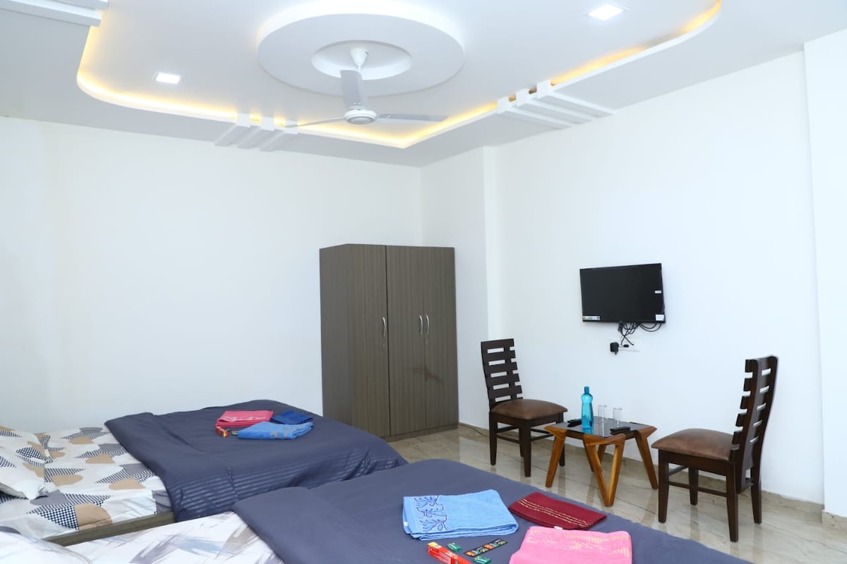 Enjoy a comfortable stay in our thoughtfully designed Deluxe Room, ideal for couples and families. The room offers modern interiors, a cozy bed, air-conditioning, and an attached private bathroom with hot water. While there is no specific view, the room provides a calm and relaxing indoor ambiance. Guests can access the swimming pool, common areas, and enjoy daily housekeeping with attentive hotel-style service for a pleasant and hassle-free stay.