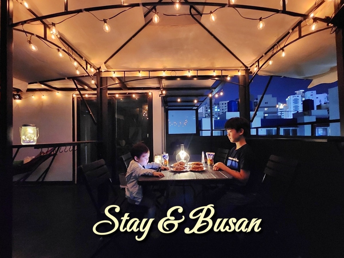 Découvrez le charme du toit-terrasse de Busan. À distance de marche de tous les restaurants, plages et vues nocturnes ! Restez et Busan est votre maison en Corée. Outre ses installations propres et élégantes, il est très apprécié des voyageurs en raison de son service amical et de son emplacement pratique. Il est situé au centre pour profiter facilement de diverses attractions et de la nourriture, et est le meilleur hébergement pour résoudre les visites et le shopping à la fois. À 5 min de la plage de Gwangalli, à 5 min de la gare de Gwangan, où les quatre saisons sont belles, c'est un hébergement spacieux et agréable dans la zone de la gare. Barbecue émotionnel privé, Passez un moment spécial en famille, entre amis et amoureux ♡