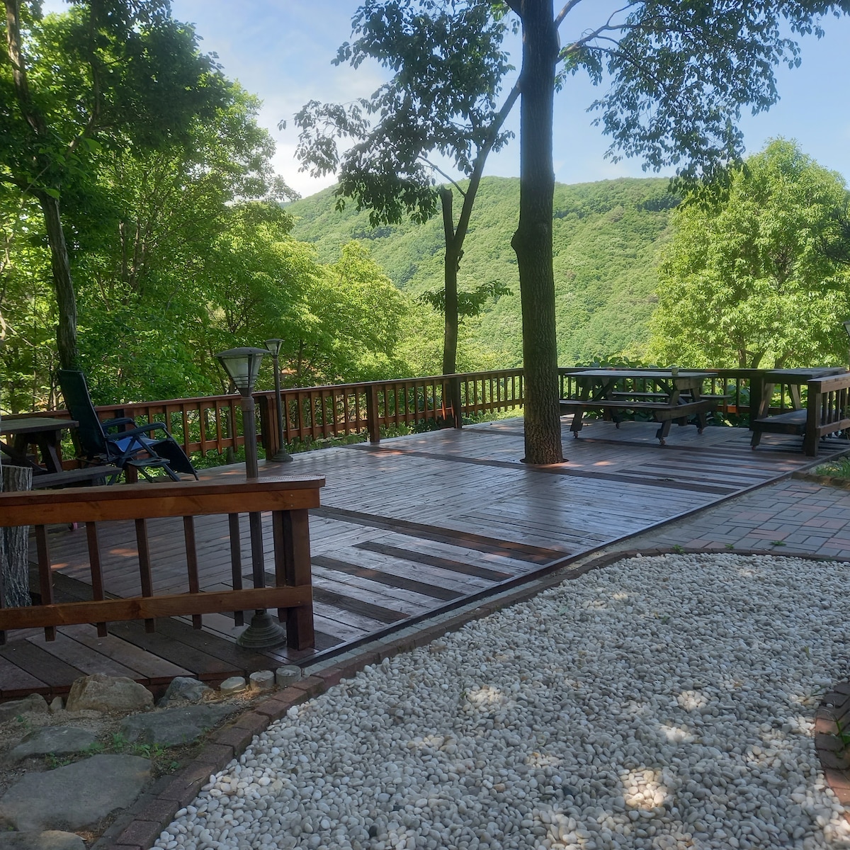 Oubliez vos soucis et vos inquiétudes en séjournant dans un logement spacieux et paisible. Situé à 450 mètres au pied des Alpes de Yeongnam, où se trouvent des montagnes célèbres de 1 000 mètres d'altitude, comme le mont Gazisan de Seoknam et le mont Jeokgeum de la plaine d'Eupseong, c'est une maison d'hôtes de 250 pyeong (832 m²) dans la forêt, entourée de sons de la nature, comme le chant des oiseaux, le bruit des insectes, le bruit de l'eau, le bruit du vent, les chuchotements de la lune et des étoiles. Cet endroit, qui n'est destiné qu'à une seule équipe, est une maison en bois de 28 pyeong avec un grand pont extérieur où vous pourrez profiter de la nature ouverte et avoir un repos tranquille et confortable. Faites des souvenirs avec un paysage que vous ne pouvez jamais profiter en ville et une maison en bois de style européen que vous ne pouvez jamais voir à la campagne. ## Autres précautions ## 1. Les visites de connaissances autres que le nombre de personnes réservées (par exemple, prendre le thé ou un repas, etc.) ou l'hébergement est interdit. 2. Il est interdit de griller ou de faire frire de la viande, du poisson ou des fruits de mer à l'intérieur de l'établissement. (C'est possible confortablement sur une grande terrasse extérieure) Les réservations ne sont possibles que si vous acceptez les précautions ci-dessus.