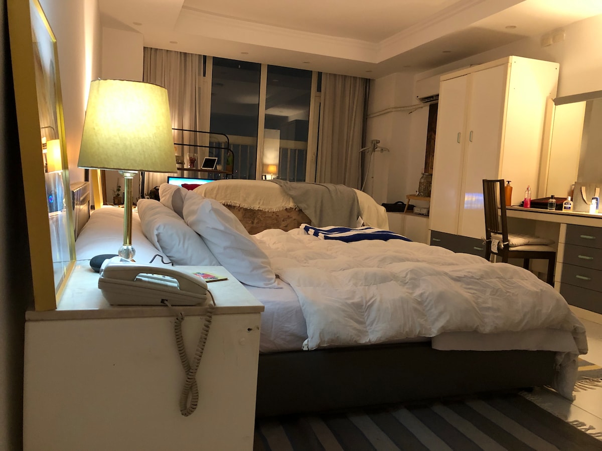 Appartement entier dans le quartier le plus calme de la ville de Nasr, à 10 minutes en voiture de l'aéroport du Caire. La maison a : -2 chambres avec 3 lits et climatisation, - Tous les appareils nécessaires et tous neufs(wifi,micro-ondes, four, friteuse à air, chaudière à eau, chauffage,réfrigérateur, 3AC, machine à laver, machine à repasser, télévision et aspirateur) -Salle de bain avec baignoire Le bâtiment dispose d'un ascenseur, et vous pouvez vous garer dans la rue, il y a un supermarché en bas, une pharmacie et une salle de sport très proche, il est à 10 minutes à pied du métro.