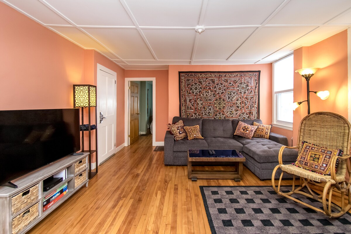 Notre appartement récemment rénové dans un quartier privé est soigneusement conçu pour répondre à vos besoins, y compris de nombreux équipements. Profitez de la cuisine entièrement fonctionnelle, de la salle de bain spacieuse, de 2 chambres et d'un salon confortable avec une grande télévision HD 65" et une connexion Internet haut débit. Situé à quelques minutes à pied des restaurants et bars du centre-ville, des magasins locaux, de la gare Amtrak, du Smith College et du Northampton Fine Arts Center. Profitez de votre expérience à Northampton dans un cadre privé mais luxueux.