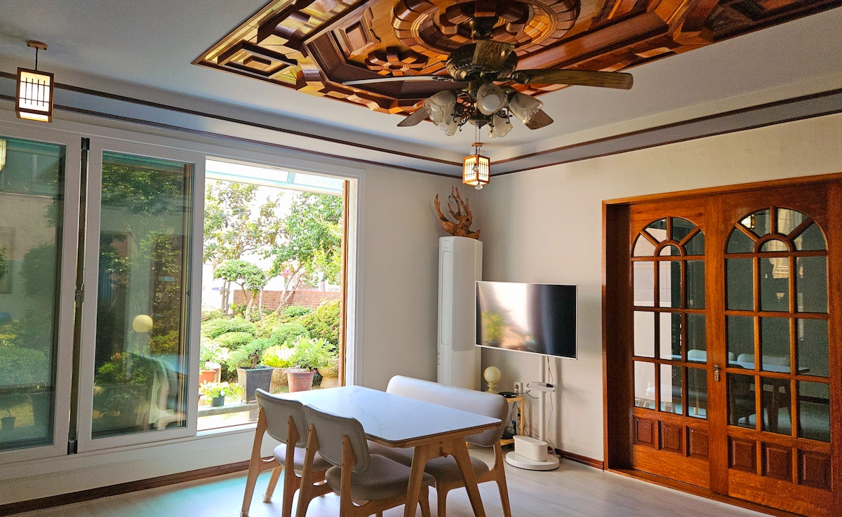 Vous pouvez profiter du jardin ♧privé et de la cour 2025. 5. C'est le premier étage du deuxième étage de la maison privée rénovée. Dans un jardin naturel créé par l'♣hôte Vous pouvez profiter du barbecue et du foyer. ♤. Standard 4 personnes, nombre maximum de personnes 8 personnes Chambre au♤ 1er étage - salon, 3 chambres (3 lits queen size, 1 canapé-lit), cuisine, 2 salles de bain Place ♠de la Paix, gare de Mokpo, musée d'histoire moderne, musée d'histoire naturelle, etc. Il est situé à 10 minutes en voiture de la zone principale de Gwanggwang. Vous pourrez vous détendre et profiter du paysage de Mokpo. ♠ ♠Vous pouvez rejoindre à pied les restaurants préférés locaux tels que Market Restaurant, Geumseong Cold Noodle, Viscount, Tobom Cafe, Old Old Choe House, Cheongho Market et Indongju Village. Parking ◇ gratuit : parking public Bipa (1 minute à pied) Pour que vous puissiez profiter d'une expérience confortable et de guérison pendant ▷votre séjour L'hôte s'en occupe lui-même et le prépare. ◁ Demandes : KakaoTalk giplky