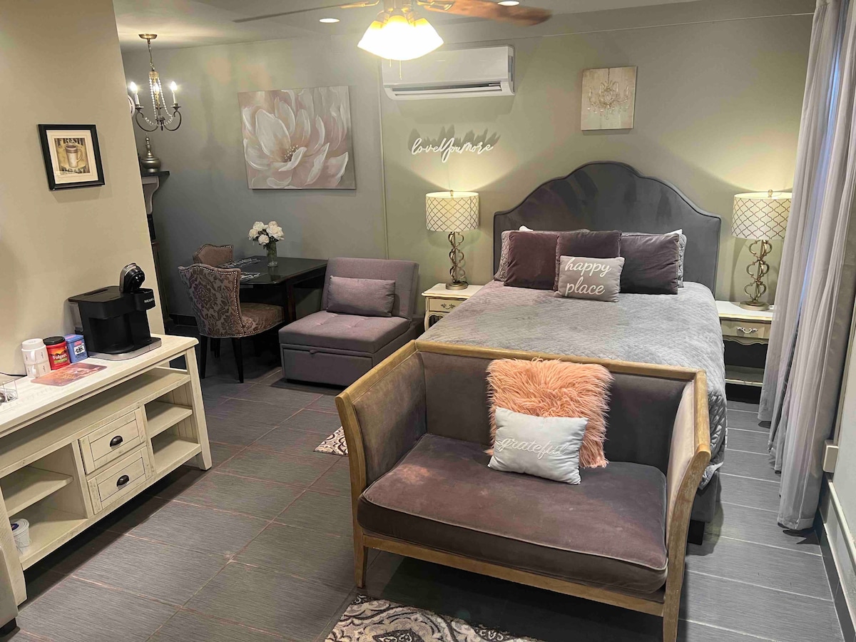 Escapade amusante avec une ambiance colorée du sud-ouest, située au centre-ville de Roswell et des sentiers pédestres/cyclables de Cahoon Park. Apportez votre livre, votre carnet de croquis, votre carnet de notes et débranchez. Pas d'Internet ni de télévision, une sélection de jeux de cartes et de société disponibles. 1 matelas double Temper-Pedic et 1 queen size.