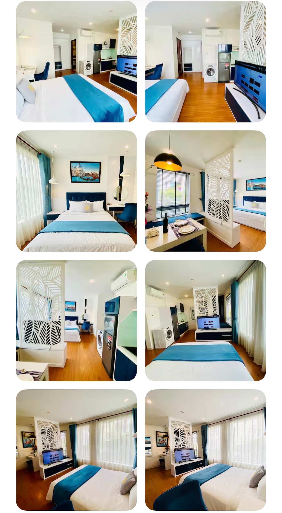 Avec son emplacement pratique, ses paysages paisibles, tranquilles et propres créent un espace de vie confortable, romantique et extrêmement attrayant. Blue Apartment vous apportera une sensation de détente et de confort pour vos vacances de longue durée. Lit confortable, literie en coton haut de gamme, lumière naturelle par grande fenêtre. Espace de travail avec bureau et chaise confortables, Internet haut débit. Douche à eau chaude avec machine à laver moderne et très antibactérienne… Vous êtes les bienvenus.