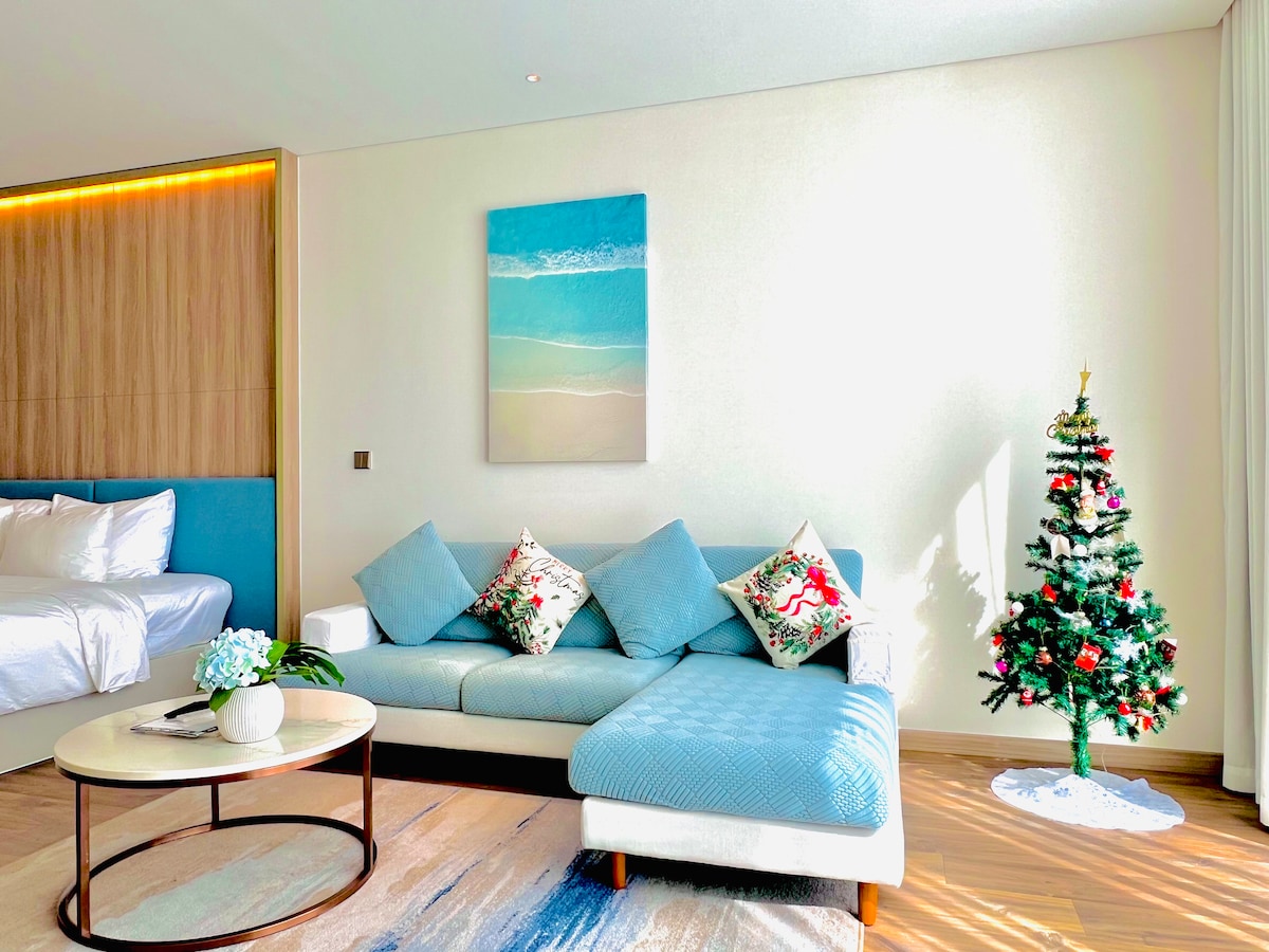 Profitez de vacances raffinées à MSR – Marina Suite Residence, un appartement de 93 m² situé au 24e étage de Citadines 5★ avec un balcon donnant sur la baie d'Ha Long et une plage privée en face. Des meubles haut de gamme, des couvertures douces et une cuisine privée apportent un rare sentiment de tranquillité. Les voyageurs peuvent profiter de deux piscines de style complexe hôtelier et d'une salle de sport 5★ au tarif préférentiel de l'hôte. Même moi, l'hôte, j'ai du mal à partir à chaque fois que je reviens.