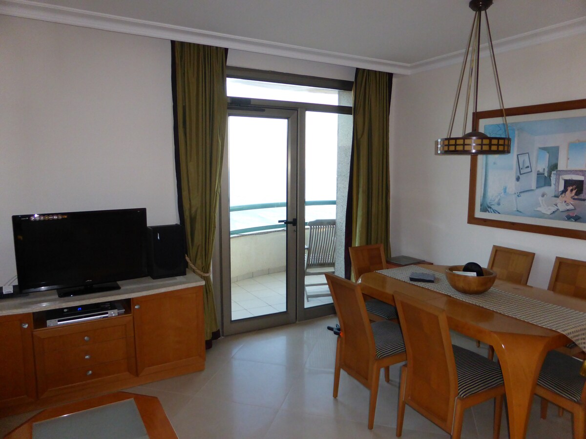 Suite d'angle au 12e étage offrant une vue imprenable sur la mer et la montagne Carmel à 180 degrés. 2 chambres avec lits King California, lave-linge et sèche-linge dans le logement, cuisine entièrement équipée, téléviseurs à écran plat, BALCON , literie luxueuse. Câble et Wifi. Climatisation centrale. Contactez-moi pour des arrangements de prix spéciaux pour un séjour de plus d'une semaine. Veuillez noter que l'appartement n'est pas considéré comme sûr pour les très jeunes enfants ou les bébés. Strictement interdit de fumer dans l'appartement ou sur le balcon