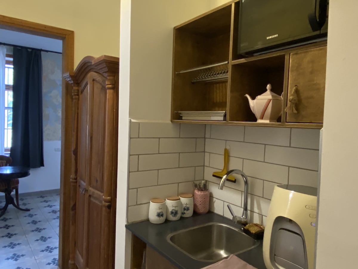 Notre bâtiment est parfaitement situé Au milieu de la colonie allemande historique de Haïfa parsemée de cafés et de restaurants, nous sommes juste en bas de la rue des Jardins Bhai, avec vue sur le Port, et le centre-ville de Haïfa avec des bars et d'autres lieux de détente est à deux pas. La chambre studio est conçue pour faire ressortir l'ancienne sensation de la maison, Pourtant, les installations sont toutes nouvelles pour rendre votre séjour confortable et accueillant.