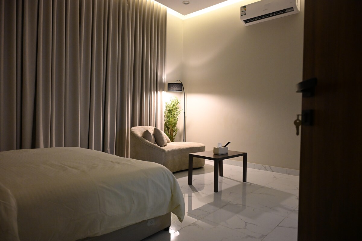 Un appartement hôtelier élégant au design moderne et à la décoration haut de gamme, situé au centre de la Ring à Hail. Doté d'un salon spacieux avec un aimant luxueux qui ajoute un confort et un style exceptionnels avec un grand écran connecté à tous les programmes de visionnage, une chambre confortable avec un lit luxueux et un design distinctif, et une salle de bain moderne équipée de toutes les fournitures essentielles. Il y a une cuisine pratique avec un micro-ondes, une bouilloire, une cafetière, des outils de préparation v60 et un mini-réfrigérateur pour répondre à tous vos besoins. Nous vous offrons une connexion Internet rapide, une hygiène élevée et une atmosphère calme qui vous offre un séjour privilégié, que ce soit pour un voyage d'affaires ou de courtes vacances.