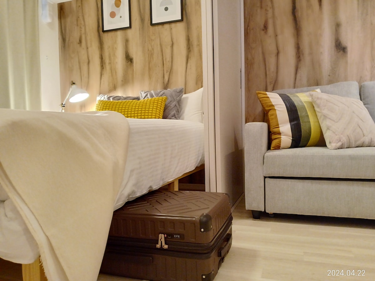 Un appartement d'une pièce propre et confortable pour une femme, idéalement situé à seulement 1 minute du métro et de l'arrêt de bus. Des magasins ouverts 24h/24 sont à proximité. La chambre comprend des ustensiles de cuisine, un cuiseur à riz et un lit semi-double Sealy pour un sommeil confortable. Il y a également 3 lave-linge/sèche-linge dans l'immeuble. Le séjour maximum est de 180 jours par an, veuillez donc réserver tôt. Cela se réinitialise chaque mois d'avril. Mise à jour des prix pour la maintenance de la qualité : à partir de 5 500 ¥/nuit en 2026, avec de légères augmentations possibles en raison de l'inflation au Japon.