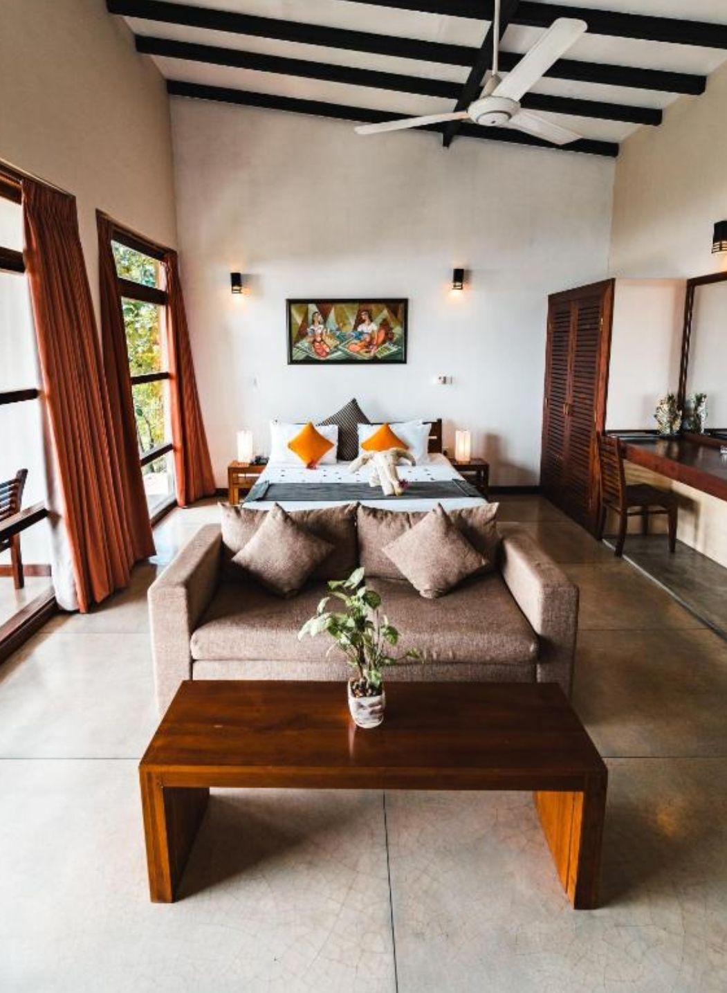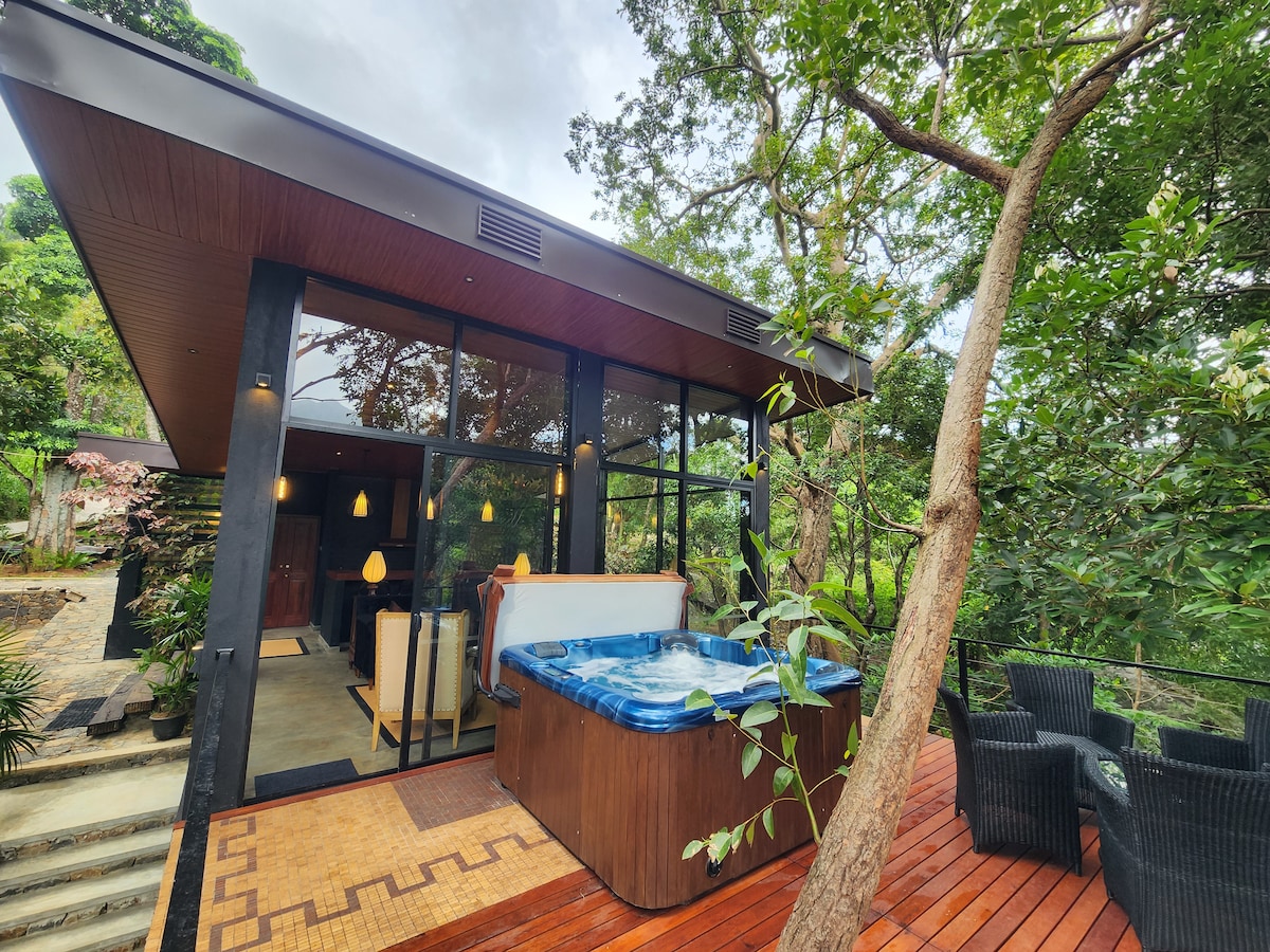 Offrez-vous une retraite paisible et relaxante dans ce luxueux bungalow contemporain niché dans un haut de falaise exclusif offrant une vue panoramique sur la montagne. Profitez du service inégalé de notre majordome expérimenté tout en savourant la cuisine appétissante préparée par notre chef maison. Les tarifs comprennent le petit-déjeuner américain ou sri-lankais quotidien et un thé de bienvenue le jour de l'arrivée.