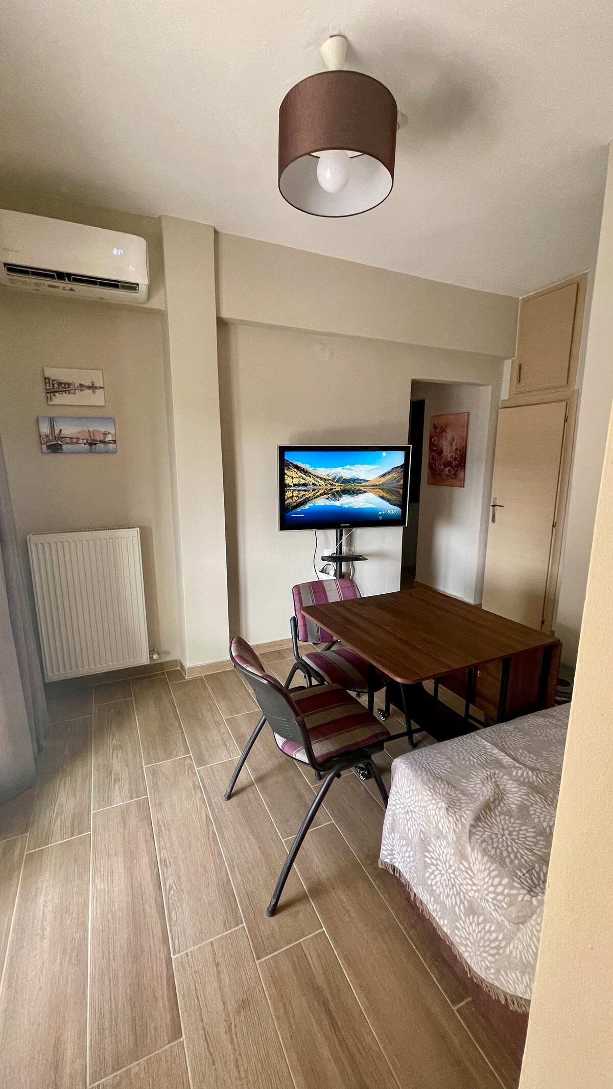 Un appartement confortable, tout neuf et moderne avec une capacité de 2 personnes. Il y a un lit double et un espace pour deux sur le canapé-lit dans la cuisine. Une salle de bain privée et une cuisine entièrement équipée sont également incluses. Vous pourrez également déguster votre café ou vos repas dans le patio. À seulement 100 mètres du bord de mer et à 200 mètres du centre du village, c'est un endroit calme et pratique pour profiter de vos vacances paisibles !