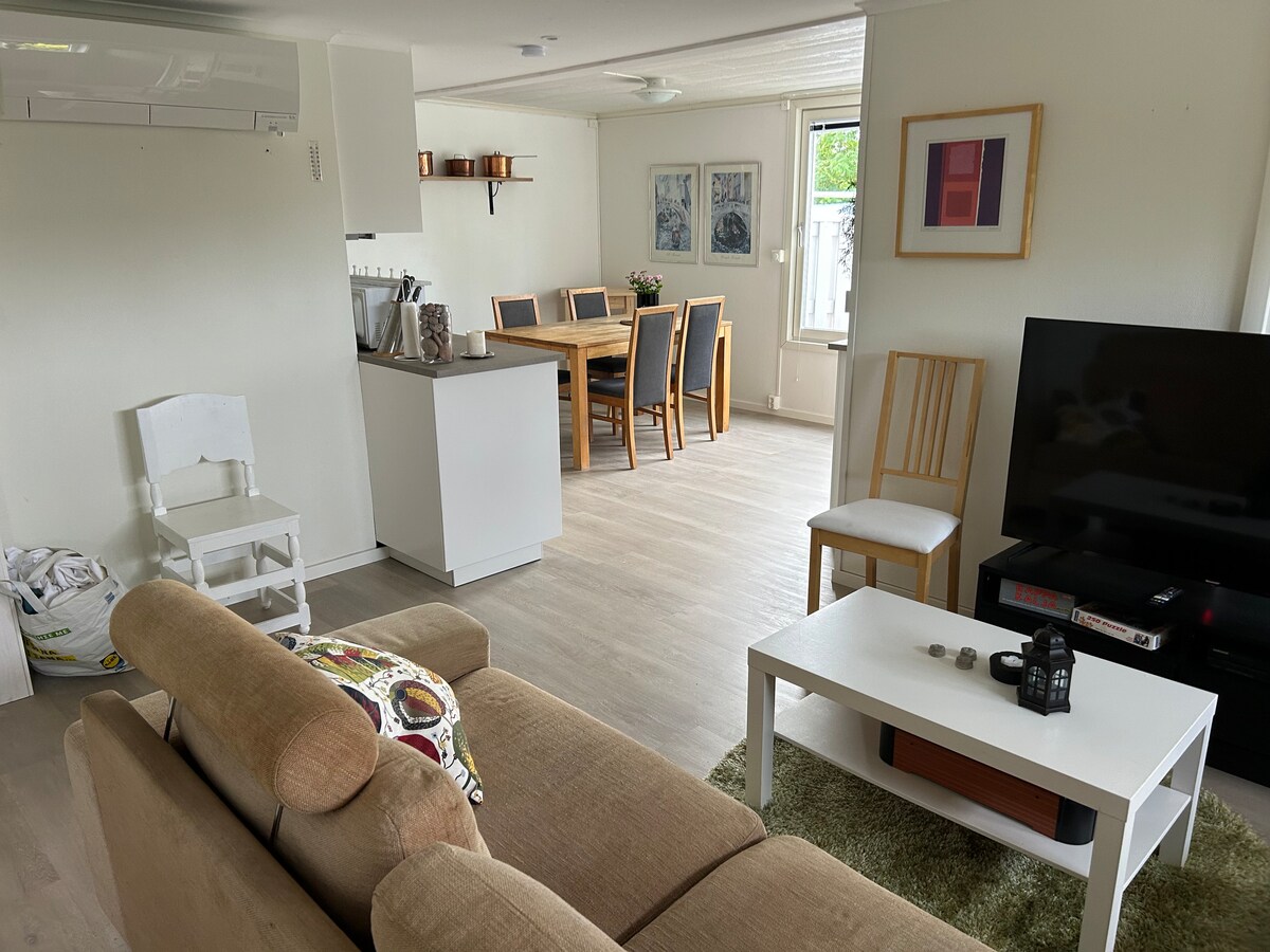 Appartement dans un quartier résidentiel calme, au centre de Sundsvall avec terrasse privée et parking. Proche des transports en commun, bus et trains. Plan ouvert avec un lit double confortable et un bon canapé-lit pour 1-2 couchages supplémentaires (draps + serviettes inclus). Toilettes et douche privées ainsi qu'une machine à laver avec sèche-linge intégré. Cuisine entièrement équipée avec réfrigérateur, congélateur, cuisinière, four, cafetière, bouilloire et micro-ondes. Excellent pour 1 à 3 adultes ou 2 adultes et 2 enfants. Télévision avec ChromeCast disponible.