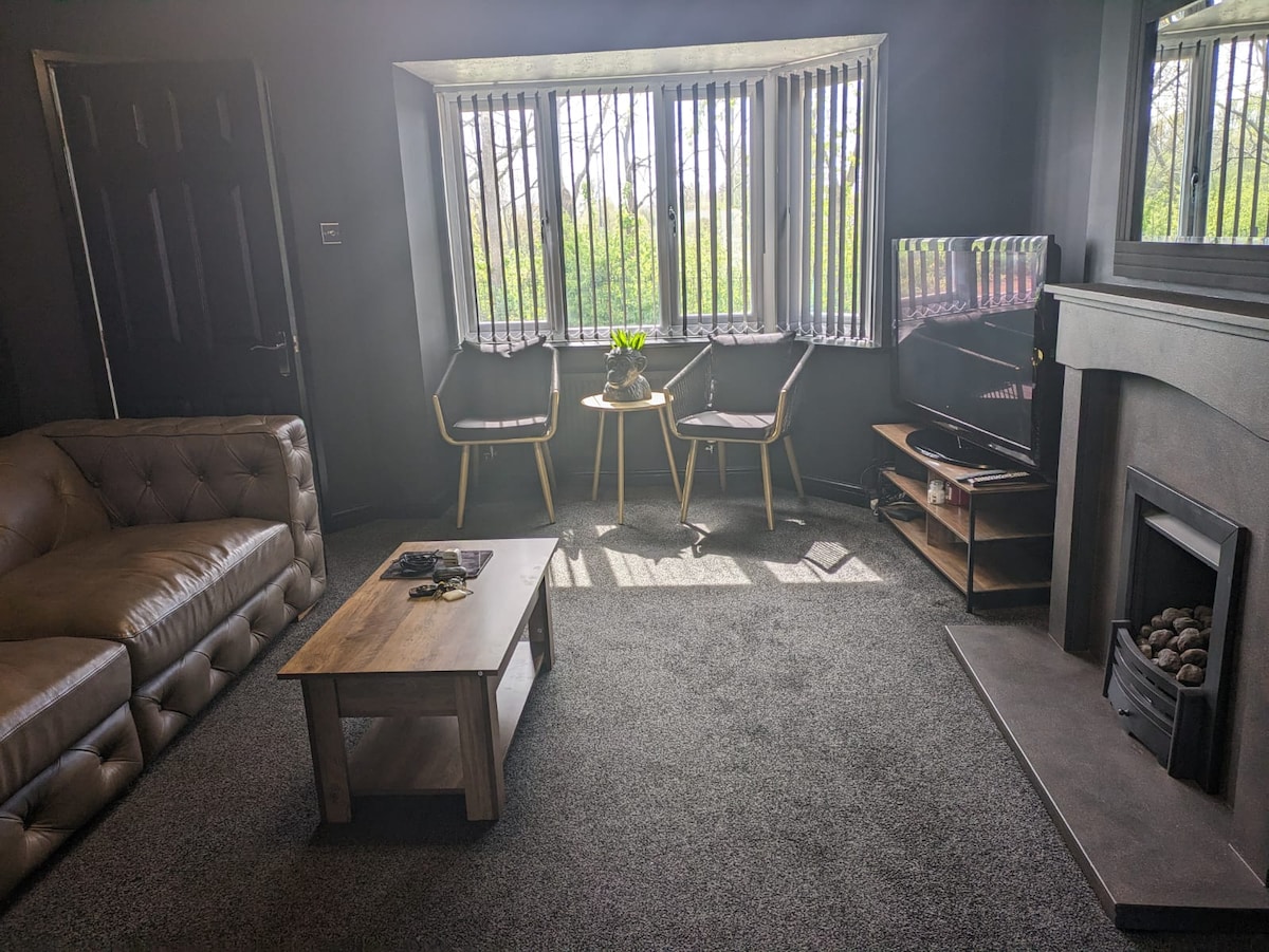 With 3 bedrooms, a dedicated office, and modern open-plan living spaces, this is the perfect base whether you re here for work, relaxation, or adventure. The House - Open-plan kitchen & dining - Living area with sofa, strip lighting, ceiling Sonos speakers, and Sky TV - Separate lounge with 65-inch TV, full Sky package (including sports) - Air conditioning in all bedrooms and the office Bedrooms - Bedroom 1 King: King-size bed, en-suite bathroom - Bedroom 2 Queen: Queen-size bed - Bedroom 3 Single: Single bed Dedicated Office - Two desks, ergonomic chair, and high-speed Ethernet - Can be converted into a fourth bedroom for 30+ day bookings Outdoor Space - Private garden with patio - Outdoor sofa seating with cushions Pets - Dogs, cats, and other pets welcome - bring your furry friends! Extra Features - Electric car charger provided (monthly credit included) - Smart door lock system with key fobs - House Manager available to assist during your stay Location Highlights - 10-minute walk / 2-minute drive to Sandymoor Shops (Co-op, bakery, fish & chips, and more) - Easy access to M56 & M6 for travel across the North West - Manchester & Liverpool airports within 20 minutes Good to Know - Check-in: 3:00pm - Check-out: 11:00am