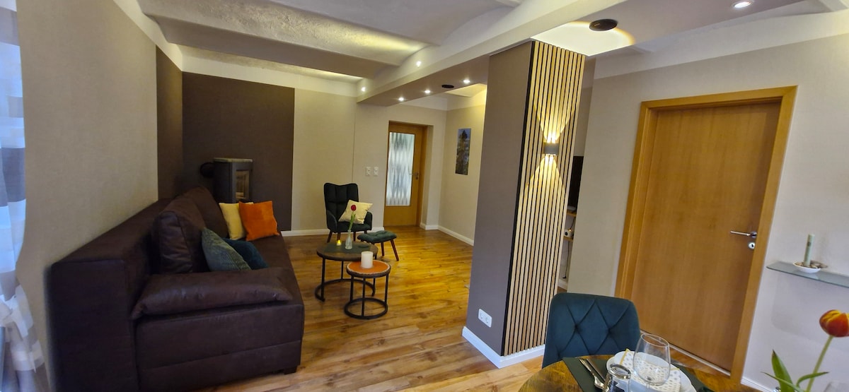 Ruhig in einem Wohngebiet gelegen, befindet sich die ca. 110 m² große Ferienwohnung in einem Einfamilienhaus. Neuwertig und mit modernen Möbeln ausgestattet bietet sie Unterkunft in zwei Schlafzimmern für bis zu 5 Personen. Eine Sauna und ein Kamin sorgen für besondere Erholung. Die gut ausgestattete Küche lässt keine kulinarischen Wünsche offen. Verkehrsgünstig gelegen an der A7 und in Flughafennähe.