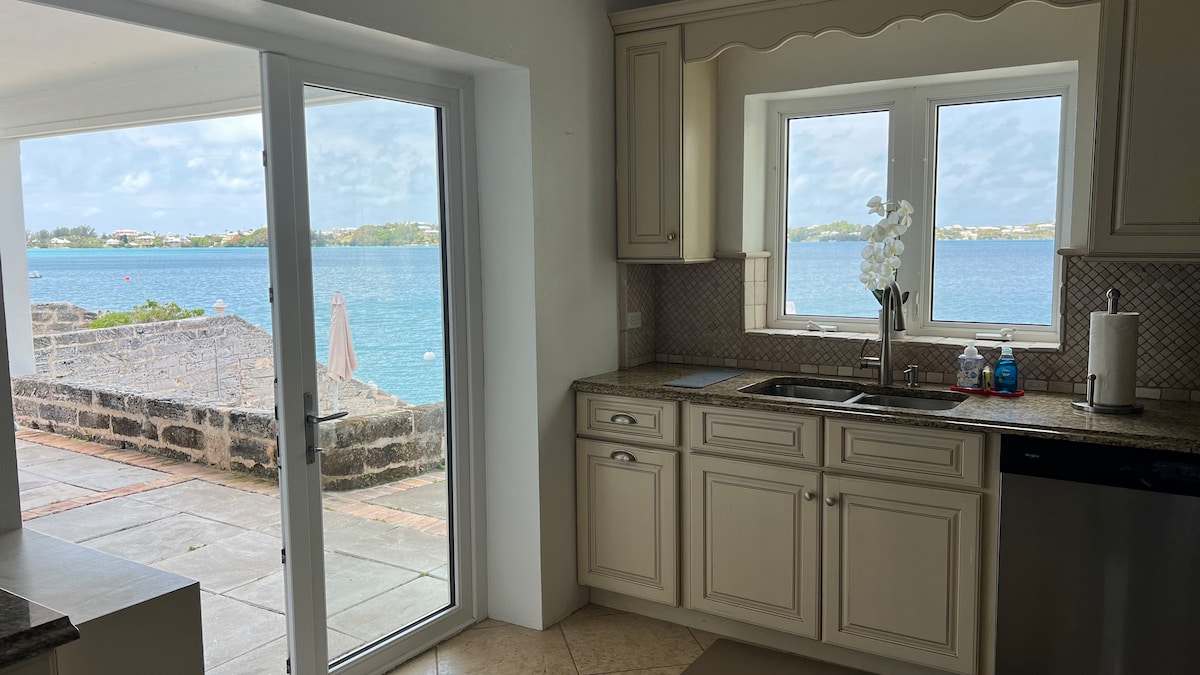 Tranquil one bedroom apartment perched on the water's edge overlooking Flatts Inlet. Relax on the porch, observing sea birds and marine life up close. Swim, snorkel, kayak, or paddleboard – all just steps from the apartment porch. Explore the coastal gardens and nearby beach. Hike the railway trail, located next to the property. Dine at the restaurants in Flatts village, a 5-minute walk down the road.