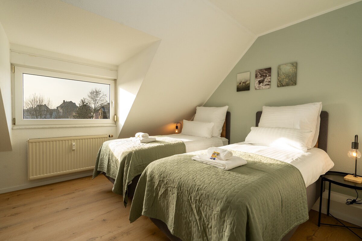 Erdgeschoss - ohne Fahrstuhl Willkommen auf Deiner ☆LIVATION☆ in diesem hochwertigen Apartment Hamm, NRW. Deine LIVATION Experience: → Ev. Krankenhaus nebenan → OLG Hamm 15 min. zu Fuß (Maps) → Zentralhallen 5 min. zu Fuß → Parkplätze direkt vor der Tür → Schlafzimmer: 2x Einzelbetten ruhig zur Innenhofseite → Wohnzimmer: Schlafcouch → Großer Smart-TV im Wohnzimmer & NETFLIX → Nespresso-Coffee & Tee → frische Bettwäsche → Großräumige Küche