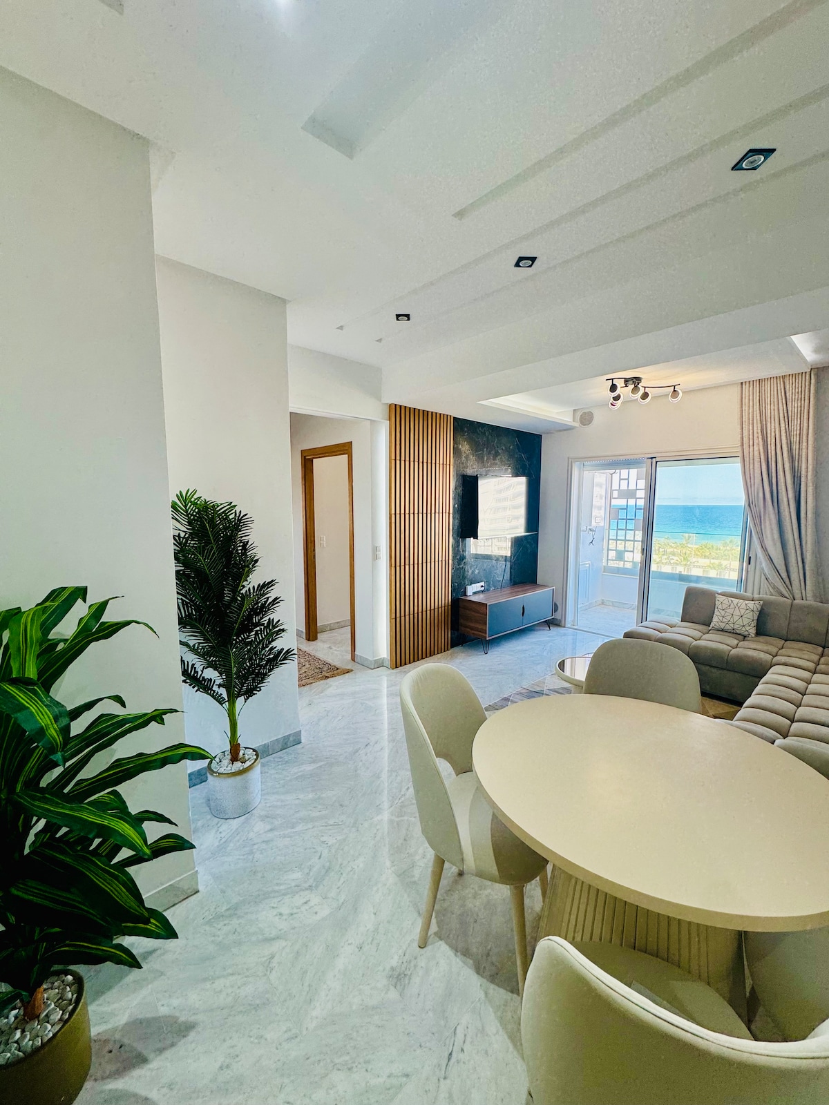 Discover this elegant and spacious apartment offering a truly breathtaking sea view from every angle. Thoughtfully decorated with a modern touch, it features a fully equipped kitchen ideal for long or short stays. Nestled in the heart of Sousse’s lively touristic zone, you’ll be close to beaches, cafés, and shops. Located peacefully on the top floor with no neighbors on the same level, it guarantees privacy, serenity, and an unforgettable stay.