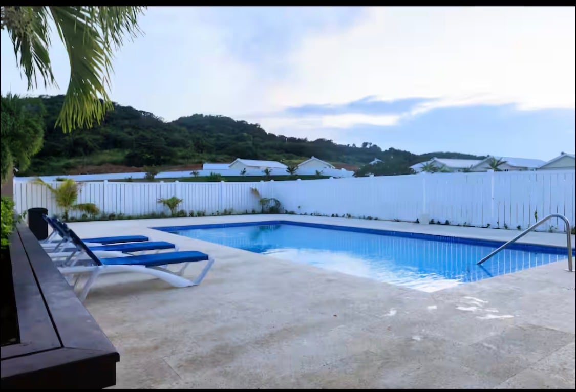 Espace moderne avec 3 chambres, 3 salles de bain, 5 couchages Il est situé à 20 minutes de l'aéroport. Complexe sécurisé avec sécurité 24h/24, salle de sport, belle piscine à débordement extérieure avec cascade et aire de jeux pour enfants avec cabane dans les arbres. Bercé par l'océan et les montagnes, il est idéal pour les couples, les petits groupes, les voyageurs d'affaires et les familles et dispose d'un accès facile en fauteuil roulant au rez-de-chaussée. Il est à seulement 5 à 10 minutes des commerces et des restaurants et à 15 minutes de Hipstrip et de la magnifique plage de Doctors Cave.