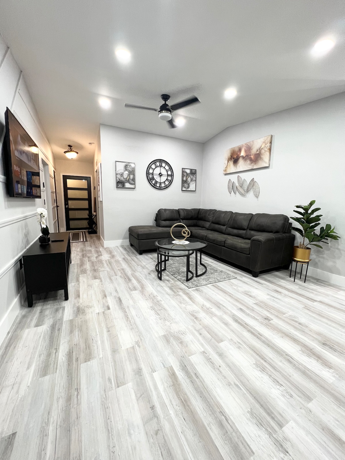 Il s'agit d'une retraite moderne du milieu du siècle récemment rénovée au cœur de Pembroke Pines. Ce studio confortable est idéal pour les séjours courte durée, avec une cuisine complète, une salle de bain magnifiquement rénovée et un salon spacieux. Détendez-vous dans un lit Queen Size confortable et un futon qui s'ouvre sur un lit double. Comprend du café gratuit, des articles de toilette, une connexion Wi-Fi rapide et une télévision intelligente avec des applications de streaming. Plongez dans le confort et le style dans cet espace accueillant de la ville animée de Pembroke Pines.