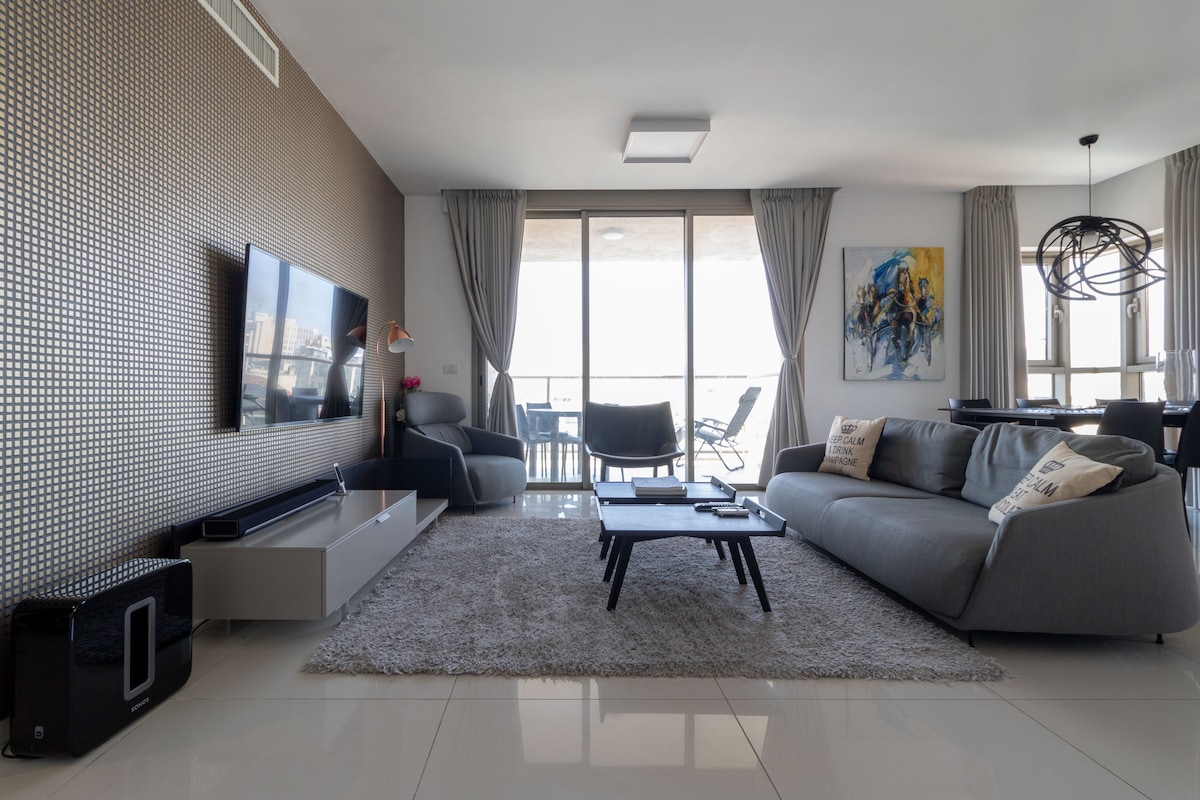 The building includes a secure shelter (mamad). there's an option to store luggage upon arrival or for late departure. The apartment features a central VRF air conditioning system, keeping the temperature comfortable and natural year-round. For stays over 7 nights, options for cleaning service in extra payment. The kitchen is kosher and comes with a Shabbat hot plate and water urn.
