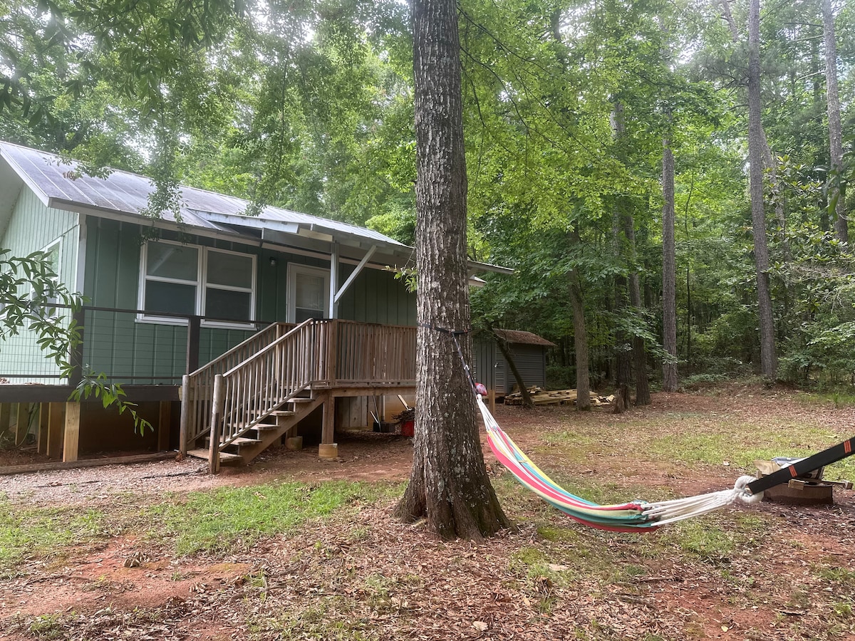 À quelques minutes en voiture de Callaway Gardens et Roosevelt Park. Peu de gens savent même qu'il existe, à l'exception des propriétaires dont la famille occupe cette terre depuis 1835. À une heure au sud d'Atlanta, la cabane n'est pas primitive, elle dispose de toutes les commodités modernes sur un terrain de 20 acres avec de plus grandes étendues de terrain adjacentes. J'ai un hébergement pour cinq personnes, mais si vous êtes une famille plus grande, je peux faire une exception. C'est un endroit très sûr et nous sommes disponibles si vous avez besoin de nous.