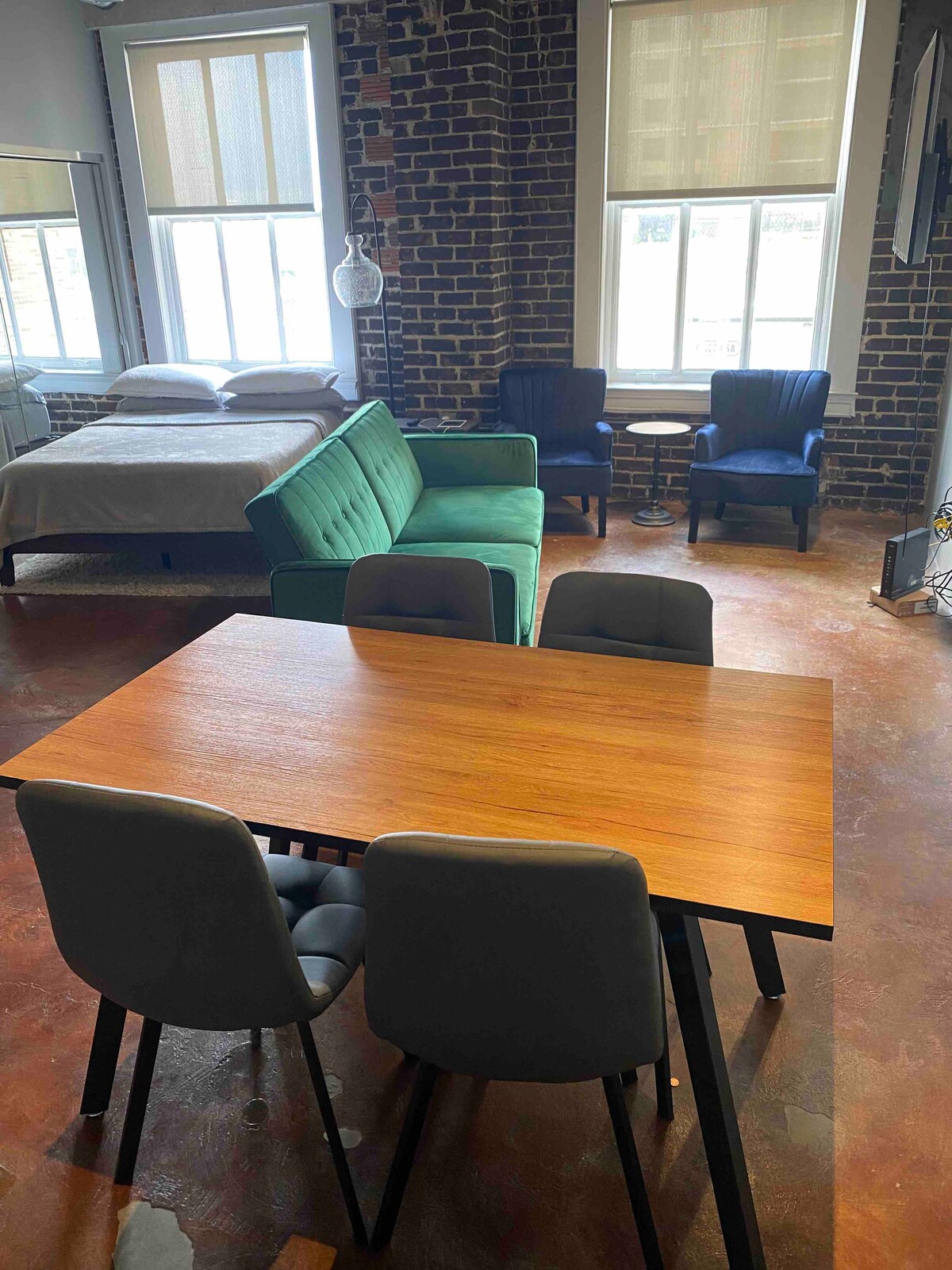Espace de luxe surdimensionné avec mobilier haut de gamme, plafonds hauts de 13 pieds et œuvres d'art qui vous intrigueront, vous et vos voyageurs. 3 lits pour accueillir jusqu'à 5 personnes dans le confort. 1 canapé pour un 6ème invité supplémentaire dans la salle d'eau. 2 salles de bain et 1 douche. Kitchenette avec nouveau réfrigérateur double. Buanderie complète et 4 places de parking couvertes incluses. Directement en face de TEPCO et Cedar Silos Events.